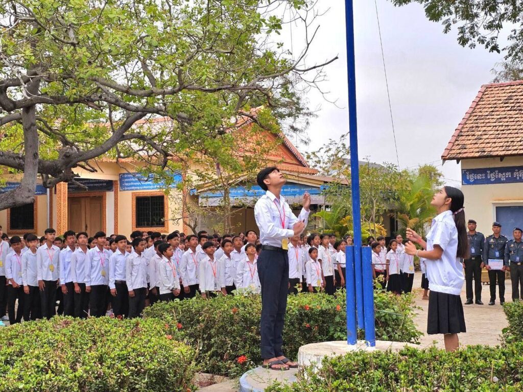 ជាកិច្ចចាប់ផ្តើមនៃកម្មវិធី លោកវរសេនីយ៍ទោ ណុល ដារ៉ា ប្រធានមន្ទីរស្រាវជ្រាវ បង្ក្រាបបទល្មើស និងក្រុមការងារអាវុធហត្ថ ក្រុមការងារសហភាពសហព័ន្ធយុវជនខេត្តកំពង់ស្ពឺ ព្រមទាំងមន្ត្រីនៃរដ្ឋបាលស្រុកគងពិសី គណៈគ្រប់គ្រងសាលា លោកគ្រូអ្នកគ្រូ ព្រមទាំងសិស្សានុសិស្សទាំងអស់ បានគោរពទង់ជាតិនៃព្រះរាជាណាចក្រកម្ពុជា។