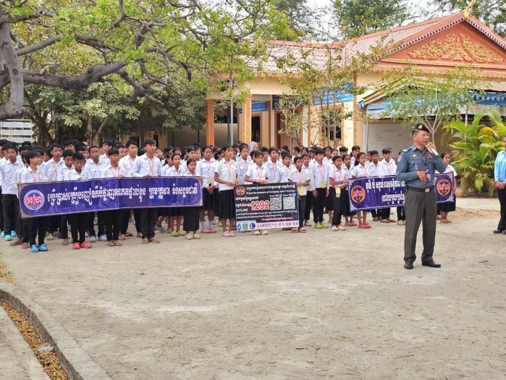 លោកវរសេនីយ៍ទោ ណុល ដារ៉ា ប្រធានមន្ទីរស្រាវជ្រាវ បង្ក្រាបបទល្មើស និងក្រុមការងារជំនាញកងរាជអាវុធហត្ថក៏បានផ្សព្វផ្សាយពន្យល់ប្រាប់អំពីផលប៉ះពាល់នៃគ្រឿងញៀន(បារីអេឡិចត្រូ និច)និងក្មេងទំនើង ជាពិសេសផ្សព្វផ្សាយនូវលេខទូរស័ព្ទអន្តរាគមន៏សង្គ្រោះបន្ទាន់1292 ដល់លោកគ្រូ អ្នកគ្រូ ព្រមទាំងសិស្សានុសិស្សទាំងអស់ឲ្យជ្រាបជាព័ត៏មាន ដោយបានពន្យល់ណែនាំពន្យល់ប្រាប់ឲ្យយល់ពីគុណសម្បត្តិ និងការប្រើប្រាស់ របៀបក្នុងការទំនាក់ទំនងមកកាន់លេខ 1292 ដែលមានការចាំទទួលពីក្រុមការងារប្រចាំការ មណ្ឌលប្រតិបត្តិការ បញ្ជាការដ្ឋានកងរាជអាវុធហត្ថខេត្តកំពង់ស្ពឺ(២៤ម៉ោងលើ២៤ម៉ោង)។