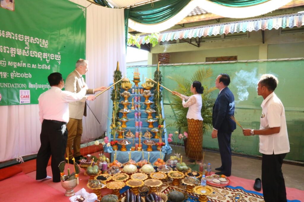 ត្បូងឃ្មុំ៖ នាព្រឹកថ្ងៃទី១០ ខែកុម្ភៈ ឆ្នាំ២០២៦ លោកស្រី នីចាន់ធីតា អភិបាលរងខេត្តត្បូងឃ្មុំ លោក វេជ្ជបណ្ឌិត កែវ វណ្ណៈ ប្រធានមន្ទីរសុខាភិបាលខេត្ត និងម្ចាស់ជំនួយ នៃមូលនិធិថែទាំភ្នែក Eye care foundation បានអញ្ជើញជាអធិបតីប្រារព្ធពិធីក្រុងពាលី បច្ចុះបឋមសិលា ជួសជុលអាគារចក្ខុសាស្ត្រ នៃមន្ទីរពេទ្យព្រះនរោត្តមសីហនុត្បូងឃ្មុំ ដែលពិធីនេះធ្វើឡើងនៅក្នុងមន្ទីរពទ្យបង្អែកព្រះនតោត្តមសីហនុត្បូងឃ្មុំ ស្ថិតនៅសង្កាត់សួង ក្រុងសួង ខេត្តត្បូងឃ្មុំ។