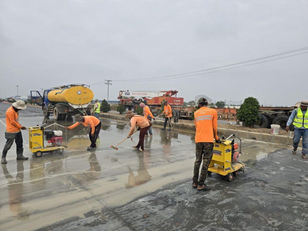 ក្នុងថ្ងៃនេះដែរ ក្រុមការងារបានសំអាតដុះលាង ដី ខ្សាច់ ប្រេងកៅស៊ូ និងប្រើម៉ាស៊ីនឆូតភាពគ្រើម ស្ថិតក្នុងភូមិព្រែកត្រែង សង្កាត់សិត្បូ ក្រុងតាខ្មៅ ចន្លោះគ.ម 15+500 ដល់គ.ម 16+000៕