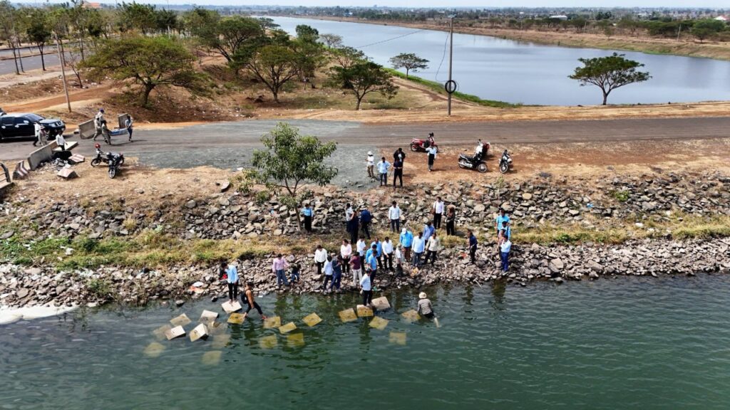 ត្បូងឃ្មុំ៖ នៅវេលាម៉ោង ១១:០០ នាទីព្រឹក ត្រូវនឹងថ្ងៃព្រហស្បតិ៍ ទី១២ ខែកុម្ភៈ ឆ្នាំ២០២៦ លោកប៉េង សម្បត្តិ អភិបាលរងខេត្តត្បូងឃ្មុំ និងលោក គល់ យ៉ាត សមាជិកក្រុមប្រឹក្សាខេត្ត បានអញ្ជើញលែងត្រីគល់រាំង ចំនួន២ក្បាល ទម្ងន់ ៧០គីឡូក្រាម ចូលទៅក្នុងអាងទឹកតាវ៉ាន់ (ទន្លេសប្បនិម្មិត ) ក្នុងតំបន់រដ្ឋបាលខេត្តត្បូងឃ្មុំ។