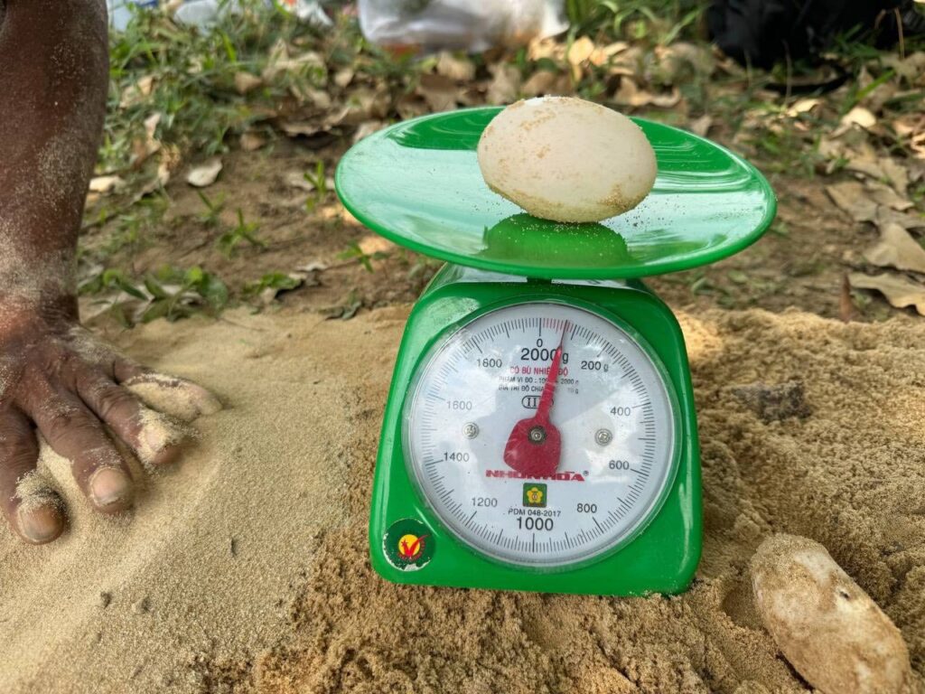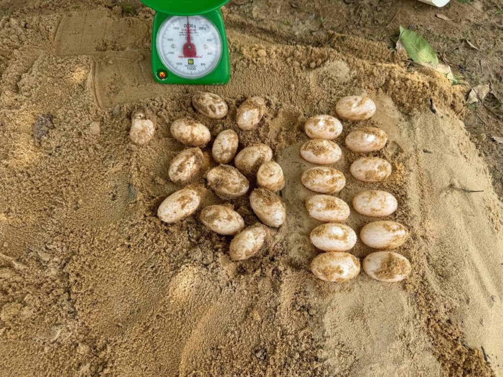 ពងអណ្តើកហ្លួងចំនួន ២៥គ្រាប់ ត្រូវបានរកឃើញនៅឆ្នេរខ្សាច់ ក្នុងខេត្តកោះកុង