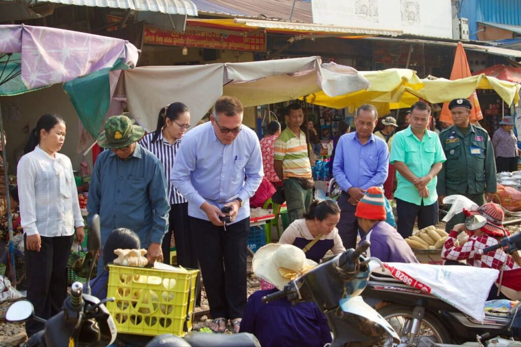 ពោធិ៍សាត់÷ នៅព្រឹកថ្ងៃទី១៨ ខែកុម្ភៈ ឆ្នាំ២០២៦ លោក ឆាយ គឹមម៉ុង អភិបាលនៃគណៈអភិបាលស្រុកបាកាន ដឹកនាំក្រុមការងារ ចុះសួរសុខទុក្ខ និងសំណេះសំណាលជាមួយបងប្អូនអាជីវករ លក់ដូរនៅ ផ្សារបឹងខ្នារ ឃុំបឹងខ្នារ ស្រុកបាកាន ខេត្តពោធិ៍សាត់។