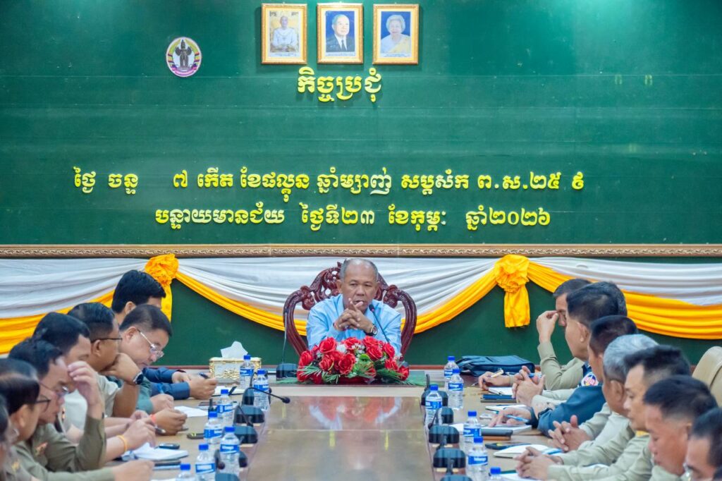 បន្ទាយមានជ័យ ៖ នៅថ្ងៃទី២៣ ខែកុម្ភៈ ឆ្នាំ ២០២៦ លោក អ៊ុំ រាត្រី អភិបាល ខេត្តបន្ទាយមានជ័យ បានអញ្ជើញដឹកនាំ កិច្ចប្រជុំ ស្ដីពីការដាក់ចេញ ផែនការត្រួតពិនិត្យជនបរទេស ឆ្លងកាត់ខេត្តបន្ទាយមានជ័យ ដើម្បីទប់ស្កាត់បទល្មើស ឆបោកតាមប្រព័ន្ធបច្ចេកវិទ្យា Online Scams។
