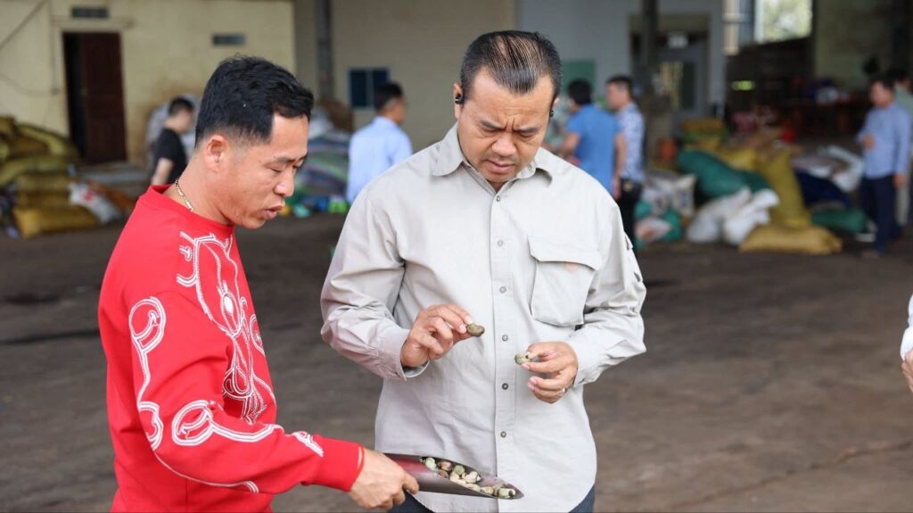 បណ្ឌិត កៅ ថាច ចុះពិនិត្យវឌ្ឍនភាពការដ្ឋានសាងសង់ទីតាំងប្រមូលទិញ និងកែច្នៃគ្រាប់ស្វាយចន្ទី និងដំឡូងមី ក្នុងខេត្តកំពង់ធំ និងកំពង់ចាម
