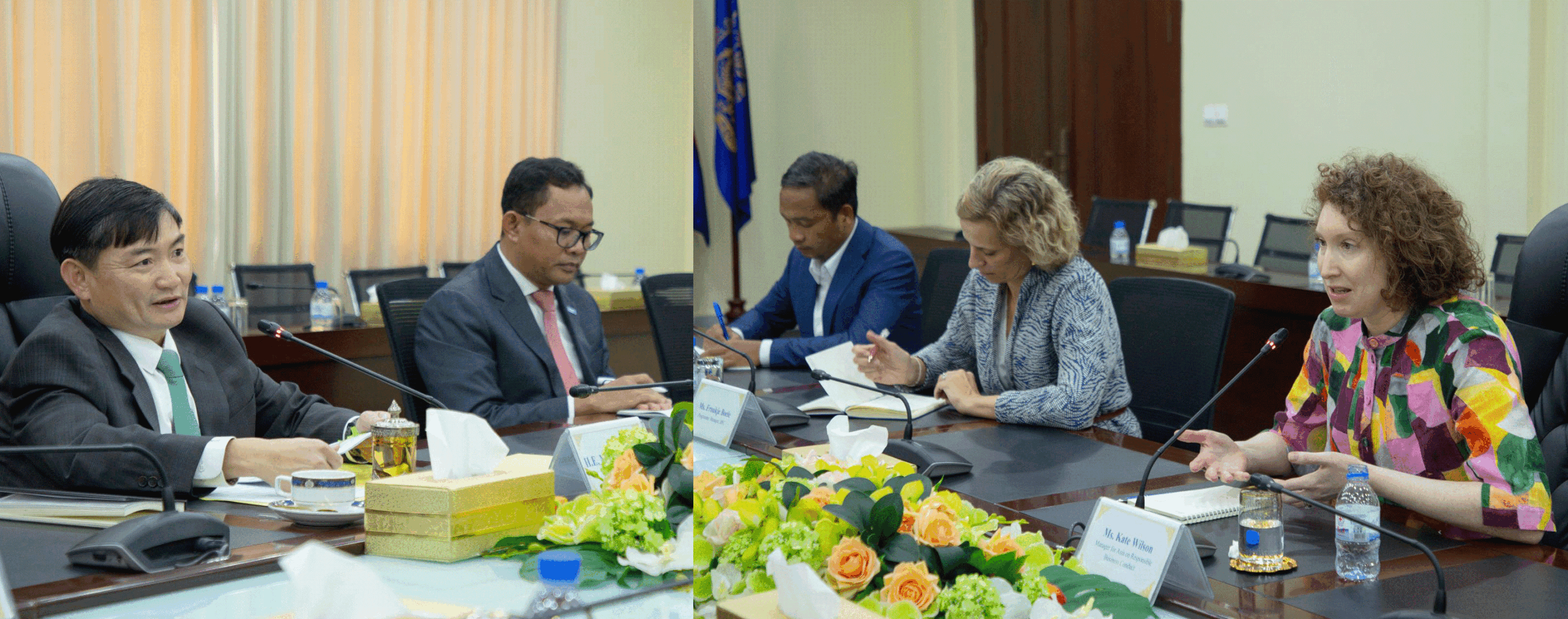 ភ្នំពេញ ៖ លោក ហេង សួរ រដ្ឋមន្ត្រីក្រសួងការងារ និងបណ្ដុះបណ្ដាលវិជ្ជាជីវៈ បានទទួលជួបសម្ដែងការគួរសម និងពិភាក្សាការងារជាមួយលោកស្រី Kate Wilson ប្រធានកម្មវិធីប្រចាំតំបន់អាស៊ី នៃមជ្ឈមណ្ឌល សម្រាប់អាជីវកម្មប្រកបដោយការទទួលខុសត្រូវ របស់អង្គការសម្រាប់កិច្ចសហប្រតិបត្តិការ និងអភិវឌ្ឍន៍សេដ្ឋកិច្ច (OECD) នាព្រឹកថ្ងៃទី២ ខែមីនា ឆ្នាំ២០២៦ នៅទីស្តីការក្រសួង ដើម្បីស្វែងរកឱកាសពង្រឹងកិច្ចសហប្រតិបត្តិការ និងពិភាក្សាលើយុទ្ធសាស្ត្រនៃការអនុវត្តអាជីវកម្ម ប្រកបដោយការទទួលខុសត្រូវ (RBC) ដែលស្របតាមអាទិភាពគោលនយោបាយ បច្ចុប្បន្នរបស់ក្រសួងការងារ និងបណ្តុះបណ្តាលវិជ្ជាជីវៈ។