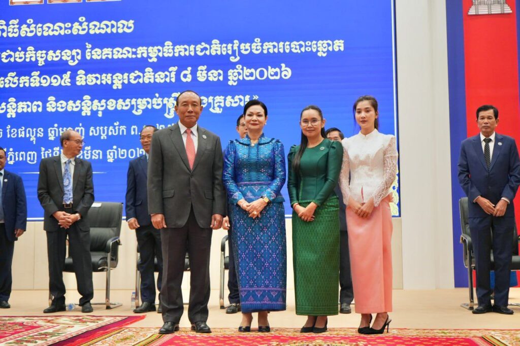 លោក បានមានប្រសាសន៍បន្តថា ការរៀបចំប្រារព្ធពិធីអបអរសាទរខួបលើកទី១១៥ ទិវាអន្តរជាតិនារី ៨មីនា សម្រាប់ឆ្នាំ២០២៦ គឺក្រោមប្រធានបទ “សន្តិភាព និងសន្តិសុខសម្រាប់ស្រ្តី និងគ្រួសារ” ដែលសម្រិតសម្រាំងដោយក្រសួងកិច្ចការនារី ជាការឆ្លើយតបទៅនឹងបរិបទបច្ចុប្បន្ន ព្រមទាំងរំលេចពីសារៈសំខាន់ មិនអាចកាត់ថ្លៃបាននៃសន្តិភាព និងសន្តិសុខសម្រាប់ស្រ្តី និងក្រុមគ្រួសារ ក៏ដូចជាគូសបញ្ជាក់ពីការរួមចំណែក យ៉ាងសកម្មរបស់ស្រ្តី ក្នុងកិច្ចខិត ខំប្រឹងប្រែងដើម្បីកសាង និងថែរក្សាសន្តិភាព ដែលជាធាតុផ្សំមិនអាចខ្វះបានសម្រាប់ ការអភិវឌ្ឍប្រកបដោយចីរភាព ស្ថិរភាព និងវិបុលភាពសង្គម។