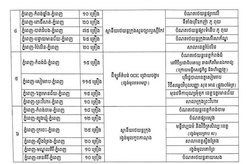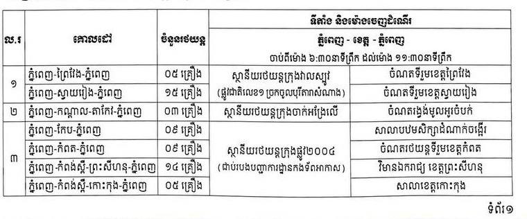 ភ្នំពេញ៖ រដ្ឋបាលរាជធានីភ្នំពេញ នឹងរៀបចំ រថយន្តក្រុង ចំនួន ៦០០គ្រឿង សម្រាប់បម្រើសេវា ដឹកជញ្ជូនសាធារណៈ រថយន្តក្រុង ដោយមិនបង់ប្រាក់ រយៈពេល ៦ថ្ងៃ ចាប់ពីថ្ងៃទី១២ ដល់ថ្ងៃទី១៧ ខែមេសា ឆ្នាំ២០២៦ នៅក្នុងឱកាសពិធីបុណ្យចូលឆ្នាំថ្មី ប្រពៃណីជាតិខ្មែរ។