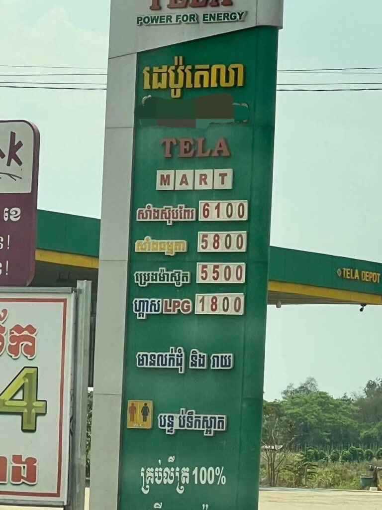 នៅតាមស្ថានីយ៍ស្តង់ដារ ៖ សាំងធម្មតា និងម៉ាស៊ូត តម្លៃ ៣,៨៥០ រៀល/លីត្រ (តម្លៃរក្សាថេរ មិនមានការប្រែប្រួលទេ)។