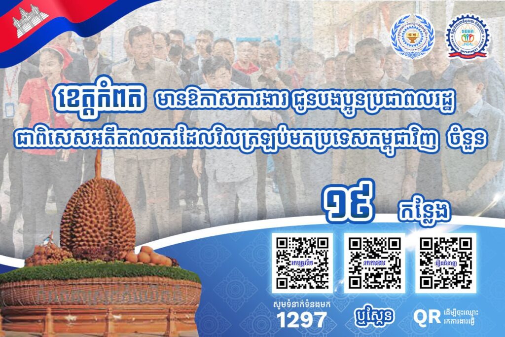 ជាមួយគ្នានេះ ក្រៅពីទំនាក់ទំនងផ្ទាល់ជាមួយក្រុមហ៊ុន រោងចក្រ សហគ្រាស អ្នកស្វែងរកការងារទាំងអស់ ជាពិសេសបងប្អូនអតីតពលករ ក៏អាចទាក់ទងមកប្រព័ន្ធទំនាក់ទំនងបន្ទាន់ ១២៩៧ ដើម្បីឱ្យក្រសួងការងារជួយសម្របសម្រួលស្វែងរកការងារជូនផងដែរ។ នេះបើតាមក្រសួងការងារដដែល៕
