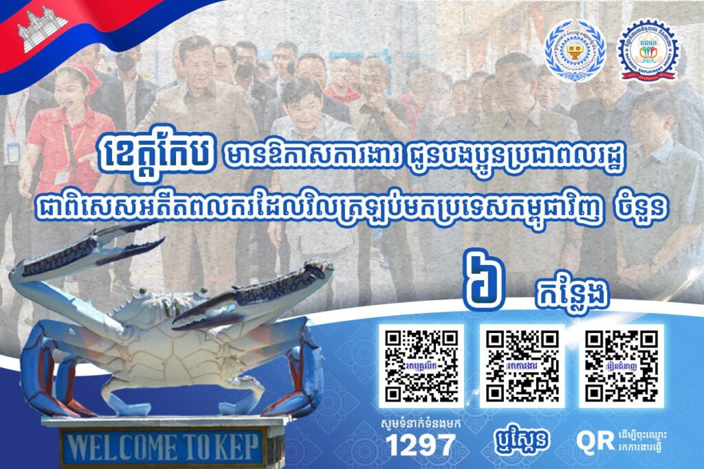 ក្រសួងការងារ ៖ ៤ខេត្តជាប់មាត់សមុទ្រ មានឱកាសការងារជាង ៥ពាន់កន្លែង កំពុងរង់ចាំអតីតពលករត្រឡប់មកពីថៃ និងអ្នកកំពុងស្វែងរកការងារធ្វើ