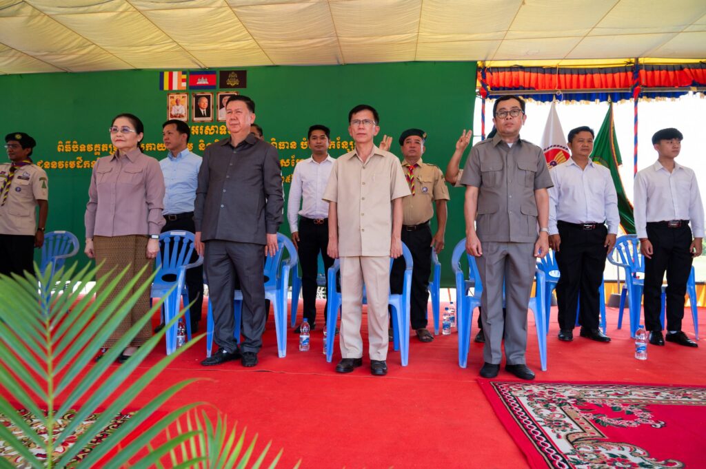 ខេត្តស្វាយរៀង៖ លោក សុខ សូកេន រដ្ឋមន្ត្រីក្រសួងអធិការកិច្ច អនុប្រធានកាយរឹទ្ធិជាតិកម្ពុជា អនុប្រធានក្រុមការងាររាជរដ្ឋាភិបាលចុះមូលដ្ឋានខេត្តស្វាយរៀង និងជាប្រធានក្រុមការងាររាជរដ្ឋាភិបាលចុះមូលដ្ឋានស្រុករមាសហែក ព្រមទាំងលោកស្រី កាលពីថ្ងៃទី៨ ខែមីនា ឆ្នាំ២០២៦ បានអញ្ជើញជាអធិបតីក្នុងពិធីសច្ចាប្រណិធាន និងបំពាក់កន្សែងជូននវកាយរឹទ្ធិថ្មីនៃកាយរឹទ្ធិជាតិកម្ពុជាស្រុករមាសហែក ដោយមានការចូលរួមពីថ្នាក់ដឹកនាំ នៃក្រសួងអធិការកិច្ច និងកាយរឹទ្ធិខេត្ត ថ្នាក់ដឹកនាំ និងសមាជិក សមាជិកា ក្រុមការងាររាជរដ្ឋាភិបាលចុះមូលដ្ឋានស្រុករមាសហែក ព្រមទាំងភ្ញៀវកិត្តិយស មន្រ្តីរាជការ លោកគ្រូ អ្នកគ្រូ និងសិស្សានុសិស្សផងដែរ។