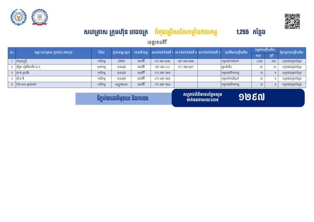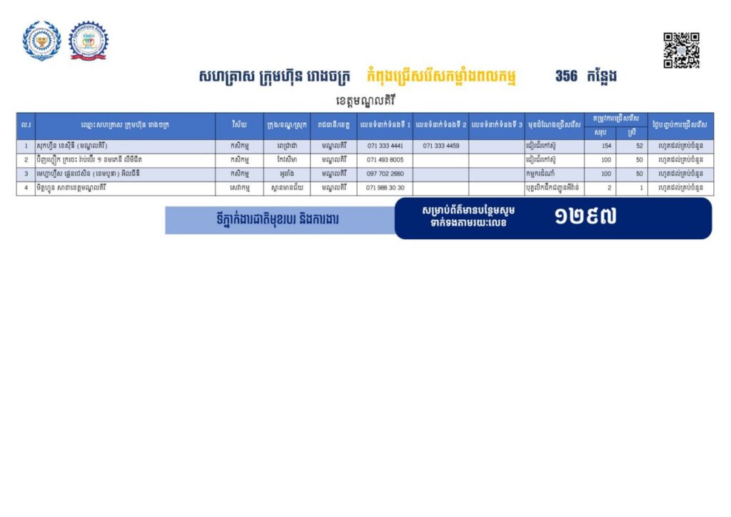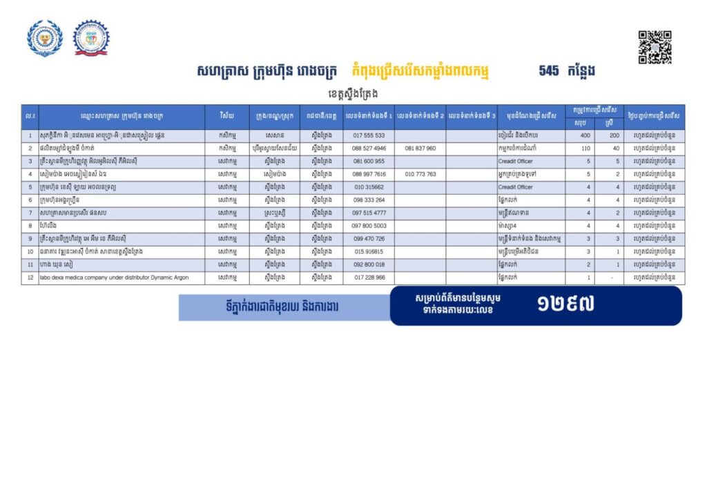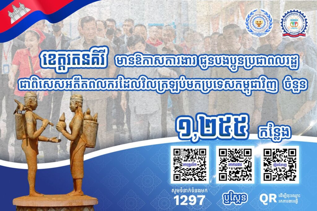 ជាមួយគ្នានេះ ក្រៅពីទំនាក់ទំនងផ្ទាល់ជាមួយក្រុមហ៊ុន សហគ្រាស និងរោងចក្រផ្ទាល់ អ្នកស្វែងរកការងារទាំងអស់ ជាពិសេសបងប្អូនអតីតពលករ ក៏អាចទាក់ទងមកប្រព័ន្ធទំនាក់ទំនងបន្ទាន់ ១២៩៧ ដើម្បីឱ្យក្រុមការងាររបស់ក្រសួងការងារ និងបណ្ដុះបណ្ដាលវិជ្ជាជីវៈ ជួយសម្របសម្រួលស្វែងរកការងារជូនផងដែរ៕
