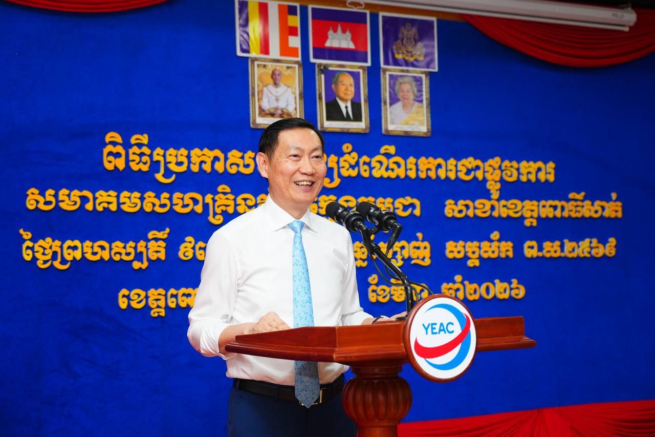 ពោធិ៍សាត់៖ លោក កែវ រតនៈ រដ្ឋមន្ត្រីក្រសួងរ៉ែ និងថាមពល និងជាប្រធានក្រុមការងាររាជរដ្ឋាភិបាលចុះជួយមូលដ្ឋានខេត្តពោធិ៍សាត់ នារសៀលថ្ងៃទី១២ ខែមីនា ឆ្នាំ២០២៦ បានអញ្ជើញជាអធិបតី ក្នុងពិធីប្រកាសដាក់ឱ្យដំណើរការជាផ្លូវការនូវ សមាគមសហគ្រិនវ័យក្មេងកម្ពុជា (YEAC) សាខាខេត្តពោធិ៍សាត់, ដោយលោក លៀង ពេជ្រ សមាជិកក្រុមប្រឹក្សាខេត្ត ត្រូវបានជ្រើសតាំង ជាប្រធានសាខា។