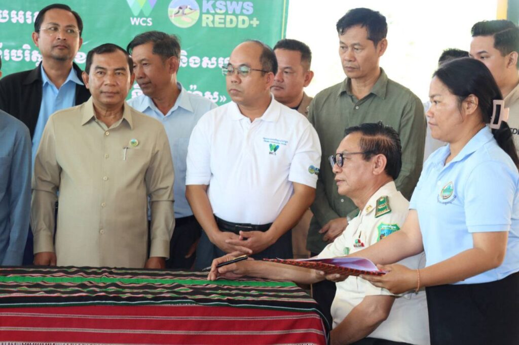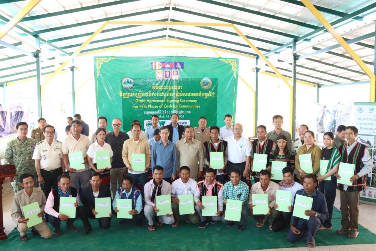 ពិធីចុះហត្ថលេខា និងប្រគល់កិច្ចព្រមព្រៀងនេះ ត្រូវបានរៀបចំឡើងនៅទីស្នាក់ការកណ្ដាលដែនជម្រកសត្វព្រៃកែវសីមា ខេត្តមណ្ឌលគិរី នាព្រឹកថ្ងៃទី១៤ ខែមីនា ឆ្នាំ២០២៦ ក្រោមអធិបតីភាពលោកជួប បារីស៍ រដ្ឋលេខាធិការក្រសួងបរិស្ថាន និងលោក ងិន សុវិមាន អភិបាលរងខេត្តមណ្ឌលគិរី ដោយមានអ្នកចូលរួមសរុប ១៣២ នាក់។