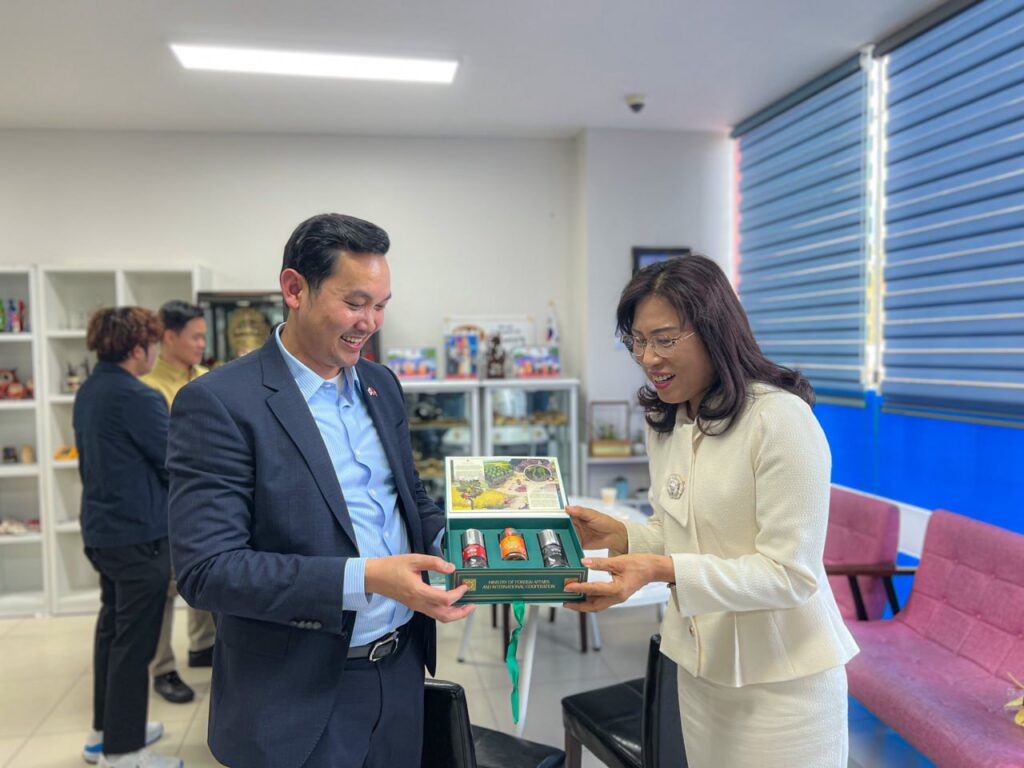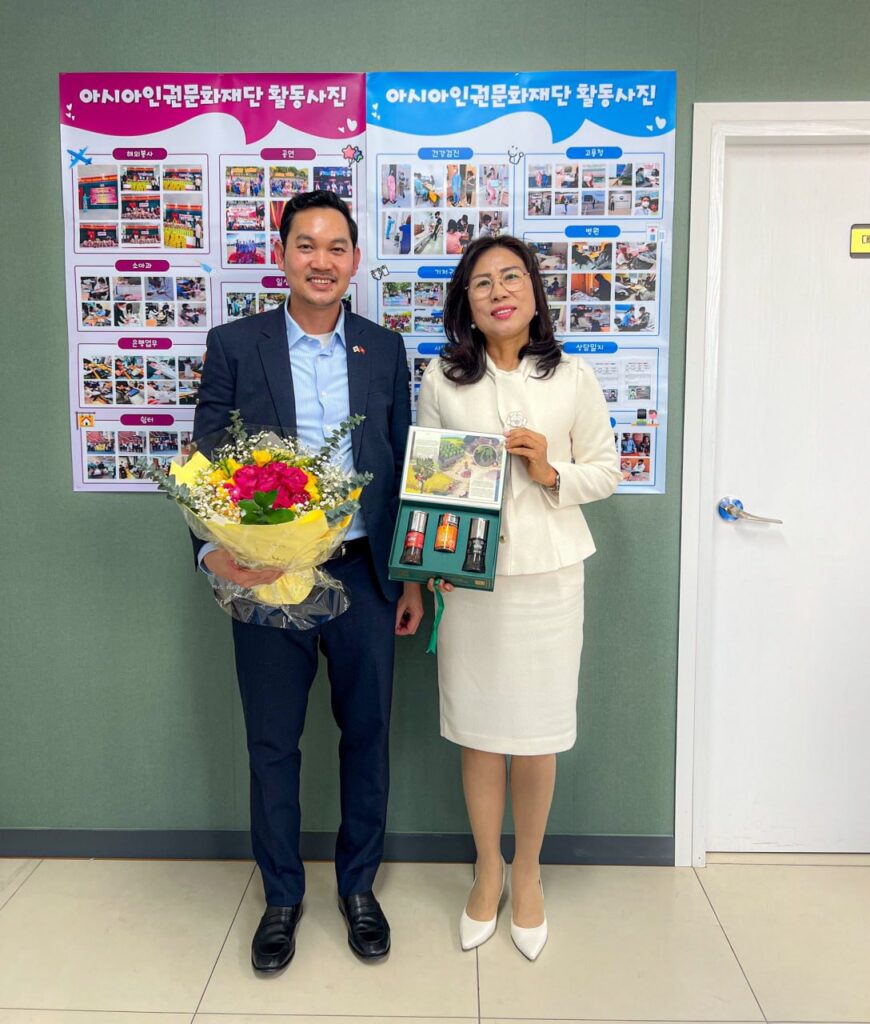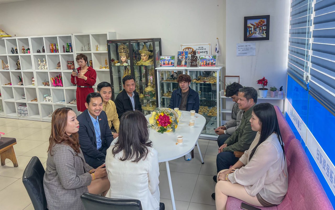 ភ្នំពេញ ៖ ក្នុងឱកាសដឹកនាំសហការី ជួបសំណេះសំណាល និងសួរសុខទុក្ខជាមួយ លោកស្រី ជូ អ៊ឺនផ្យ៉ូ(Joo Eun-pyo) ប្រធានមជ្ឈមណ្ឌលសិទ្ធិមនុស្ស និងវប្បធម៌អាស៊ី នៅតំបន់ក្វាងជូធំ លោក ឃួន ផុនរតនៈ ឯកអគ្គរាជទូតកម្ពុជា ប្រចាំសាធារណរដ្ឋកូរ៉េ បានលើកឡើងថា ប្រធានមជ្ឈមណ្ឌលសិទ្ធិមនុស្ស របស់កូរ៉េនេះ តែងតែយកចិត្តទុកដាក់ ក្នុងការផ្ដល់សេវាប្រឹក្សា ដោះស្រាយបញ្ហា ចំពោះពលករ និងប្រជាពលរដ្ឋកម្ពុជាកន្លងមក។