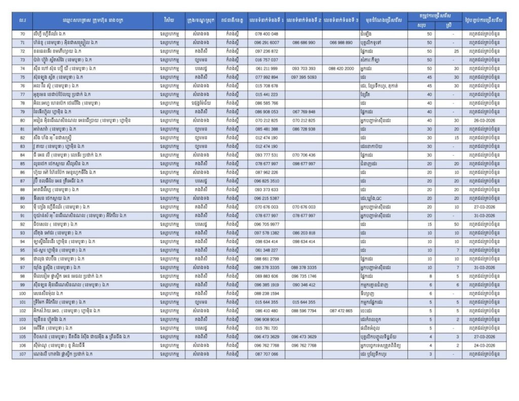 ដើម្បីទទួលបានឱកាសការងារទាំងនោះ បងប្អូនអតីតពលករដែលត្រឡប់មកកម្ពុជាវិញ និងអ្នកកំពុងស្វែងរកការងារធ្វើ អាចស្វែងរកលេខទំនាក់ទំនង ឈ្មោះរោងចក្រ និងវិស័យដែលខ្លួនពេញចិត្តបានតាមរយៈខិតបណ្ណការងាររបស់ក្រសួងដែលបានផ្សព្វផ្សាយយ៉ាងលម្អិត។