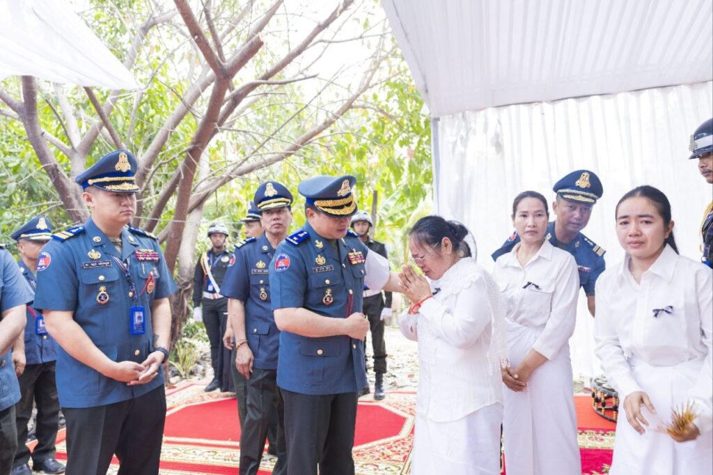 កំពង់ស្ពឺ៖ ដោយ​មានការ​ចង្អុល​បង្ហាញ​ណែនាំពី​ លោក​​​ នាយឧត្តមសេនីយ៍ សៅ សុខា អគ្គមេបញ្ជាការរង នៃកងយោធពលខេមភូមិន្ទ មេបញ្ជាការ កងរាជអាវុធហត្ថលើផ្ទៃប្រទេស​​ នៅថ្ងៃទី២៤ ខែមីនា ឆ្នាំ២០២៦ វេលាម៉ោង១៦:០០ នាទី​ លោកឧត្តមសេនីយ៍ត្រី​ ម៉េង​ ស្រ៊ុន​ មេបញ្ជាការ​ កងរាអាវុធហត្ថខេត្តកំពង់ស្ពឺ​ បានអញ្ជើញ​ដឹកនាំ​ប្រតិភូកងរាជអាវុធហត្ថខេត្តកំពង់ស្ពឺ​ ក្នុងពីធីដាក់កម្រងផ្កាគោរពវិញ្ញាណក្ខន្ធ លោកឧត្តមសេនីយ៍ទោ សោម សាម៉ុន (អតីតមេបញ្ជាការរង កងរាជអាវុធហត្ថខេត្តកំពង់ស្ពឺ) ដែលបានទទួលមរណៈភាព កាលពីវេលាម៉ោង ២រសៀល​ នាថ្ងៃទី២២ ខែមីនា ឆ្នាំ២០២៦ ដោយ​រោគាពាធ​​​ ស្ថិតនៅភូមិត្រពាំងលើក សង្កាត់រកាធំ ខេត្តកំពង់ស្ពឺ។