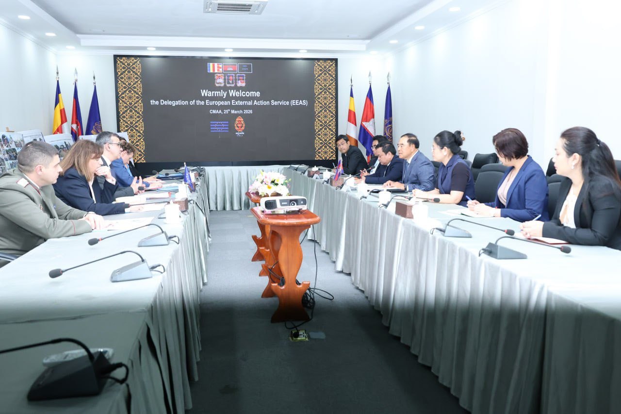 ការស្នើរបស់ លោកបណ្ឌិត លី ធុជ នាឱកាសទទួលជួបពិភាក្សាការងារជាមួយ លោក Cosmin Dobran នាយកទទួលបន្ទុកសន្តិភាព ភាពជាដៃគូ និងគ្រប់គ្រងវិបត្តិ នៃអង្គភាពសេវាកិច្ចការបរទេសរបស់សហភាពអ៊ឺរ៉ុប (European External Action Service_EEAS) និងគណៈប្រតិភូ ដើម្បីផ្លាស់ប្តូរយោបល់ពី ស្ថានភាពព្រំដែន និងការគាំទ្រកិច្ចការបោសសម្អាតមីន នាថ្ងៃទី២៥ ខែមីនា ឆ្នាំ២០២៦ នៅទីស្នាក់ការអាជ្ញាធរមីន។