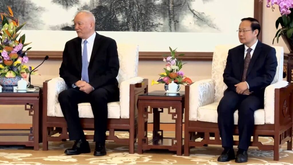 ភ្នំពេញ ៖ ព្រះករុណា ព្រះបាទ សម្តេចព្រះបរមនាថ ព្រះមហាក្សត្រកម្ពុជា និងសម្តេចព្រះមហាក្សត្រី ព្រះវររាជមាតាជាតិខ្មែរ បានសព្វព្រះរាជហឬទ័យ ប្រោសព្រះរាជទាន ព្រះរាជសវនាការជាមួយលោក Cai Qi សមាជិកគណៈអចិន្ត្រៃយ៍ នៃការិយាល័យនយោបាយ នៃគណៈកម្មាធិការមជ្ឈិមបក្ស កម្មុយនីស្តចិន នៅវិមានរដ្ឋដាយយូតៃ រដ្ឋធានីប៉េកាំង នៅព្រឹកថ្ងៃទី២៥ ខែមីនា ឆ្នាំ២០២៦ ៕