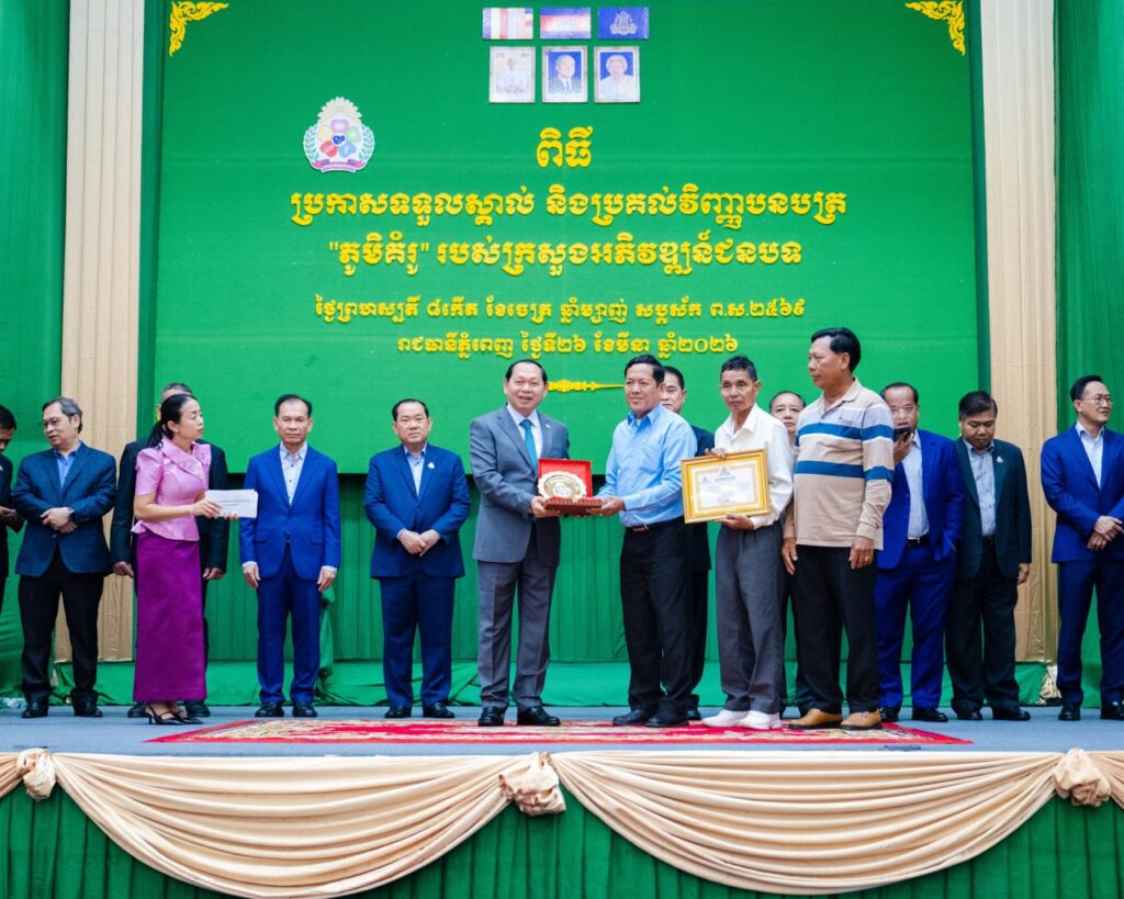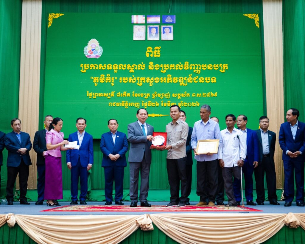 ភ្នំពេញ៖ លោក ឆាយ ឫទ្ធិសែន រដ្ឋមន្ត្រីក្រសួងអភិវឌ្ឍន៍ជនបទ នាព្រឹកថ្ងៃទី២៦ ខែមីនា ឆ្នាំ២០២៦ បានអញ្ជើញជាគណ:អធិបតី ក្នុងពិធីប្រកាសទទួលស្គាល់ និងប្រគល់វិញ្ញាបនបត្រ “ ភូមិគំរូ “សម្រាប់ក្រសួងអភិវឌ្ឍន៍ជនបទចំនួន ៥១ភូមិ សម្រាប់ឆ្នាំ២០២៥ ។