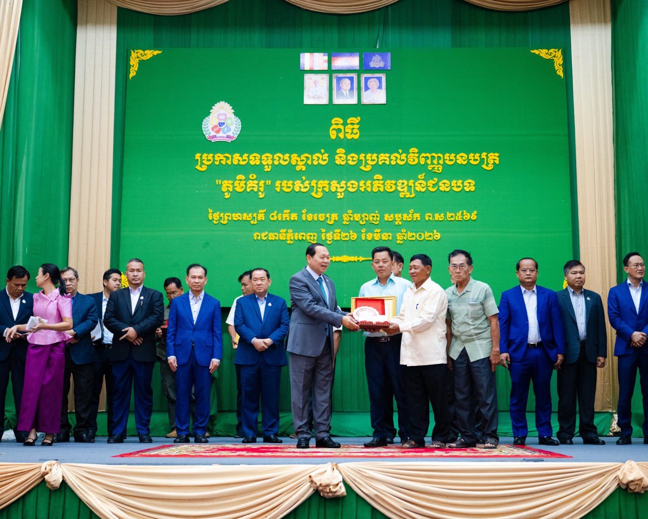 ភ្នំពេញ៖ លោក ឆាយ ឫទ្ធិសែន រដ្ឋមន្ត្រីក្រសួងអភិវឌ្ឍន៍ជនបទ នាព្រឹកថ្ងៃទី២៦ ខែមីនា ឆ្នាំ២០២៦ បានអញ្ជើញជាគណ:អធិបតី ក្នុងពិធីប្រកាសទទួលស្គាល់ និងប្រគល់វិញ្ញាបនបត្រ “ ភូមិគំរូ “សម្រាប់ក្រសួងអភិវឌ្ឍន៍ជនបទចំនួន ៥១ភូមិ សម្រាប់ឆ្នាំ២០២៥ ។