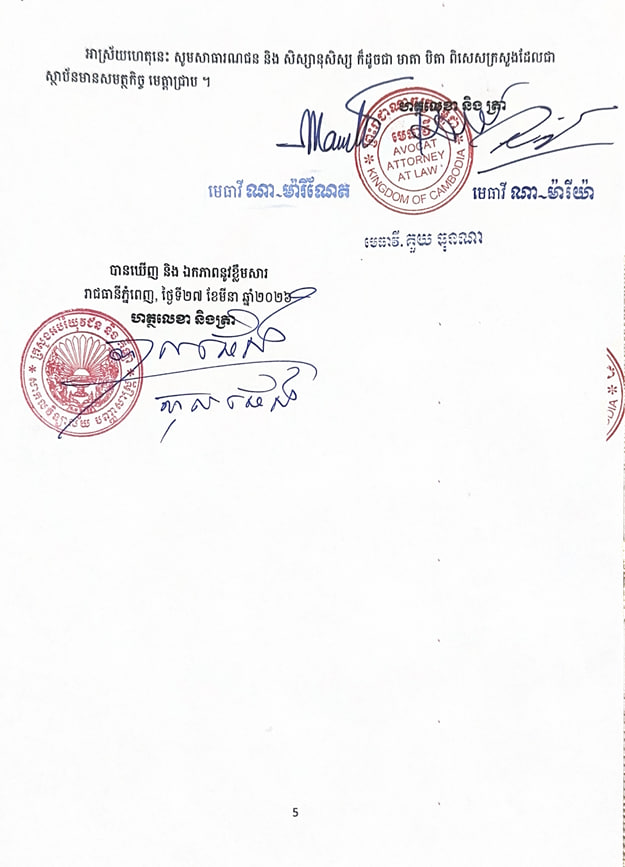 អាស្រ័យហេតុនេះ សូមសាធារណជន មាតាបិតា សិស្សានុសិស្ស និងក្រសួងស្ថាប័នមានសមត្ថកិច្ច មេត្តាជ្រាបជាព័ត៌មាន៕