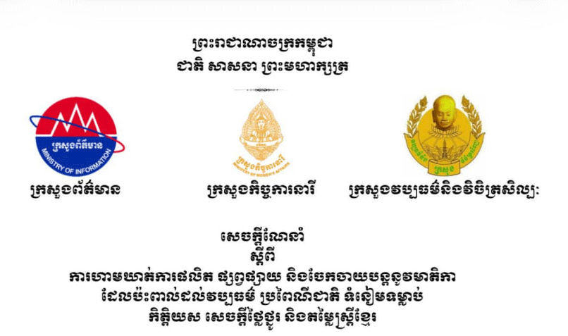 ក្រសួង៣ ហាមឃាត់ការផលិត ផ្សព្វផ្សាយ និងចែកចាយបន្ត នូវមាតិកា ដែលប៉ះពាល់វប្បធម៌ និងតម្លៃស្ត្រីខ្មែរ