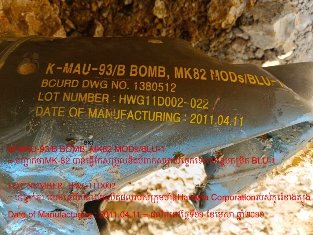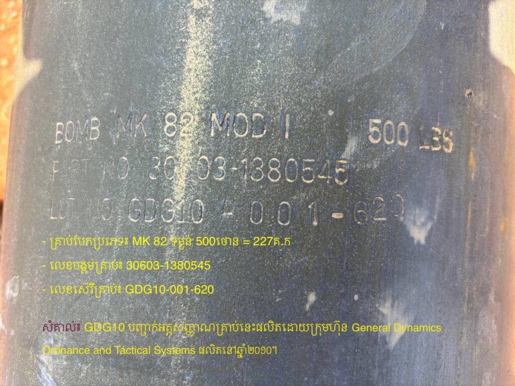 បើយោងតាមគណនីហ្វេសប៊ុក របស់លោក ហេង រតនា បានឱ្យដឹងថា គ្រាប់បែកMK-82 នេះបានកប់ក្នុងដីជម្រៅជាង១៣ម៉ែត្រ! គ្រាប់បែកទម្លាក់ពីយន្តហោះMK-82 ផលិតនៅឆ្នាំ២០១០ ដោយក្រុមហ៊ុន GDG (General Dynamics Ordnance and Tactical Systems) និងបានកែសម្រួលបំពាក់បន្ថែមសម្ភារបច្ចេកទេស របស់ក្រុមហ៊ុនកូរ៉េខាងត្បូង HWG(Hanwha Corporation)និងបានទម្លាក់លើ មាតុភូមិកម្ពុជា ដោយទ័ពអាកាសសៀមឈ្លានពាន នៅថ្ងៃទី១០ ខែធ្នូ ឆ្នាំ២០២៥ វេលាម៉ោងប្រមាណ៤រសៀល។