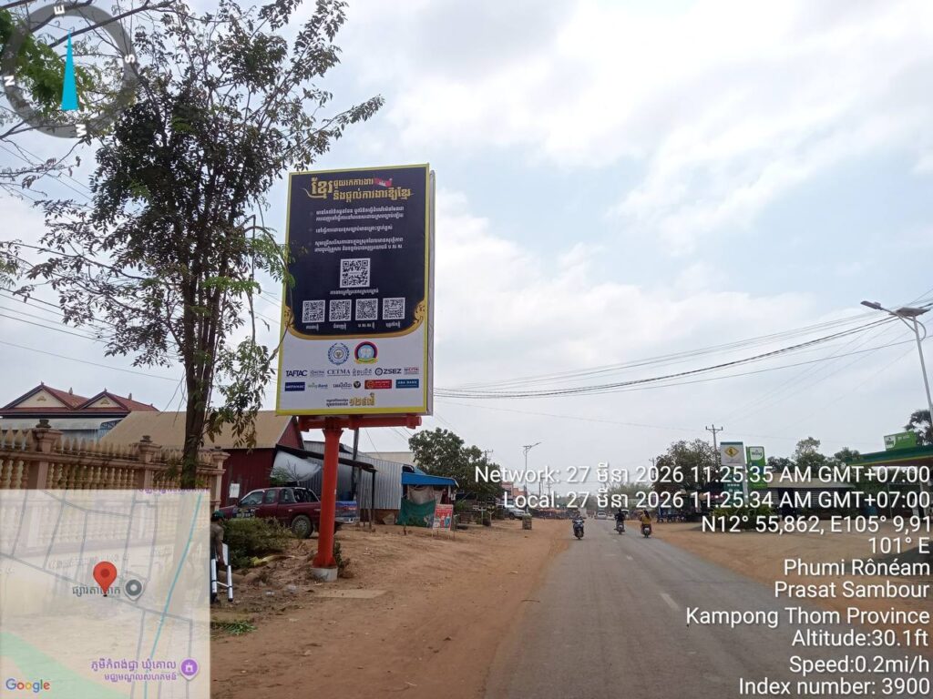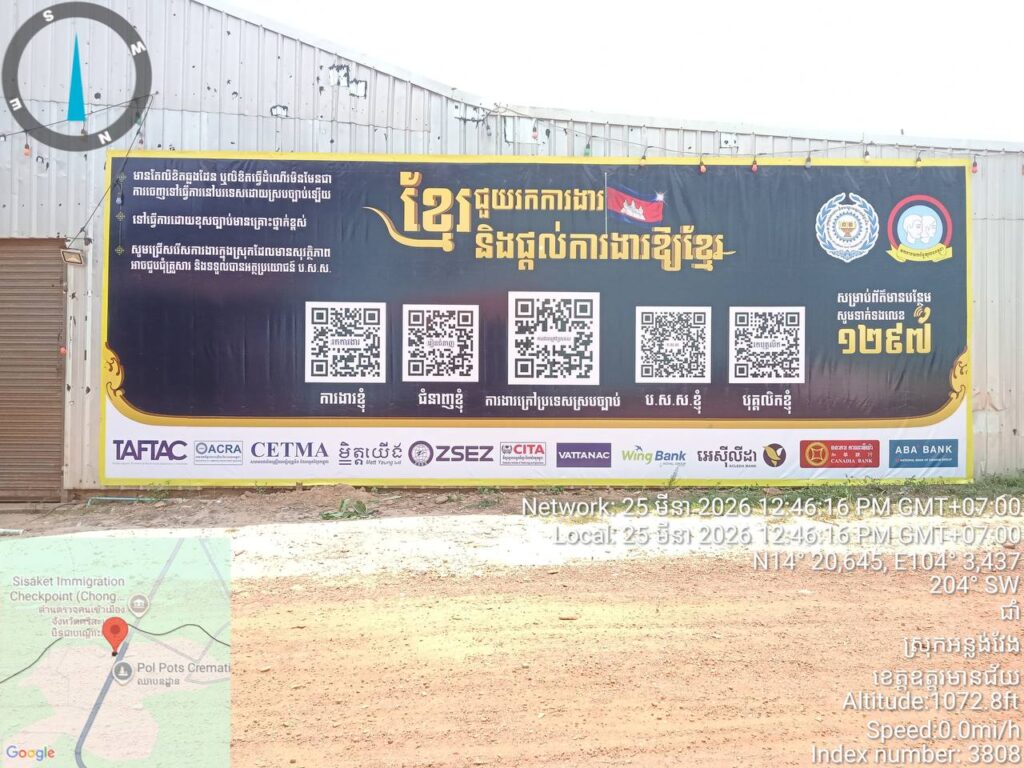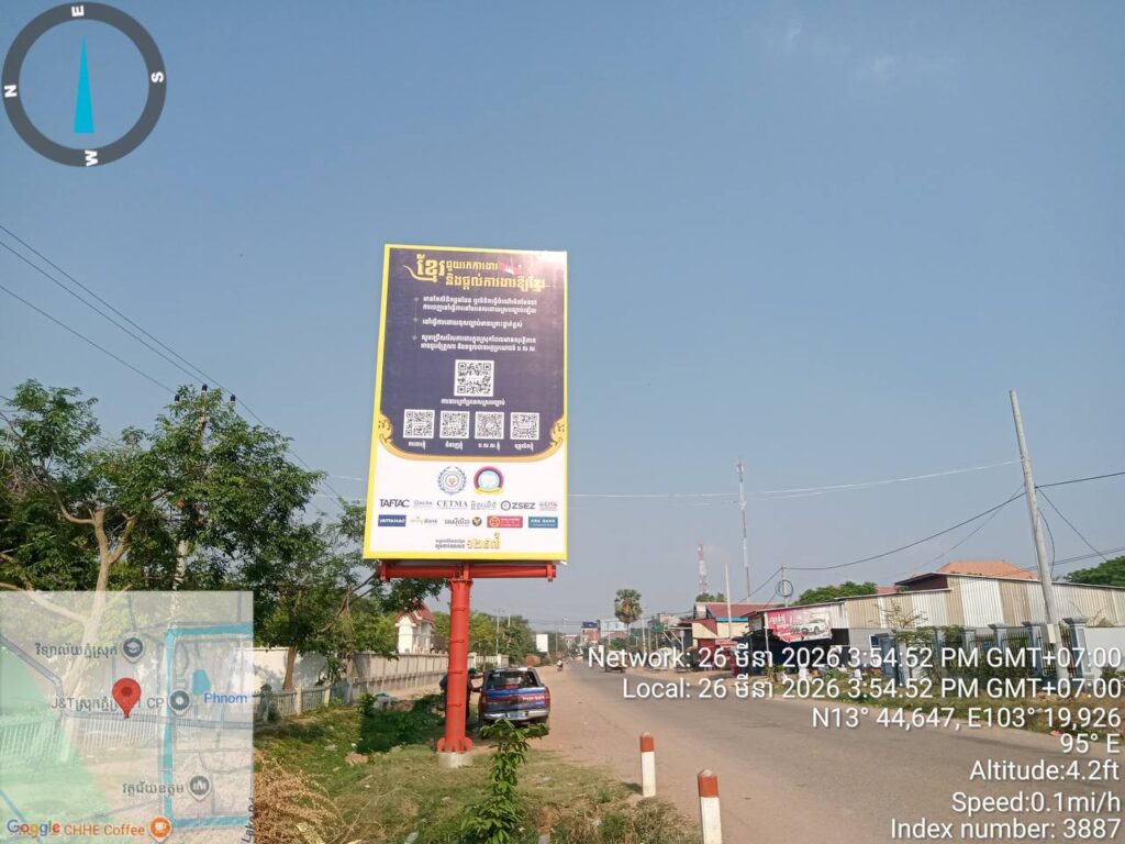 ភ្នំពេញ ៖ ​ក្រសួង​ការ​ងារ និង​បណ្ដុះ​បណ្ដា​លវិជ្ជា​ជីវៈ បានបង្កើត​យុទ្ធនាការ ​«ខ្មែរ​ជួយ​រក​ការ​ងារ និង​ផ្តល់​ការ​ងារ​ឱ្យ​ខ្មែរ» តាមរយៈ​ការ​ផលិត​ផ្ទាំង​ផ្សព្វ​ផ្សាយ​ចំនួនជិត ២០០​ផ្ទាំង ត្រូវបាន​ផលិត​សម្រាប់​បំពាក់​នៅ​តាម​បណ្តា​ខេត្ត​ជាប់​ព្រំដែន​ចំនួន ៦​ខេត្ត ដែលមានចំនួន ៨២ទីតាំង បូករួមទាំង ៣៣​បង្គោ​ល (បំពាក់ ៦៦ផ្ទាំង) គិតត្រឹមថ្ងៃទី៣១ ខែមីនា ឆ្នាំ​២០២៦​នេះ។