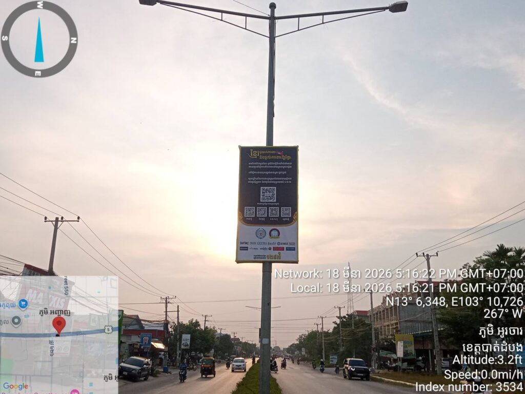 លោកបន្តថា មន្រ្តីជំនាញ​បាន​បំពាក់​ផ្ទាំង Banner ខ្នា​ត ៣m x ៨m ចំនួ​ន ៥៥​ទីតាំង​ដែល​មា​នចំនួន ៥៥​ផ្ទាំង ក្នុង​នោះ​បាន​បំពាក់​នៅ​ខេត្ត​សៀម​រាប, ខេត្ត​ព្រះ​វិហារ, ខេត្ត​ឧត្តរ​មាន​ជ័យ, ខេត្ត​បន្ទាយ​មាន​ជ័យ, ខេត្តប៉ៃលិន និង​ខេត្ត​បាត់​ដំបង។