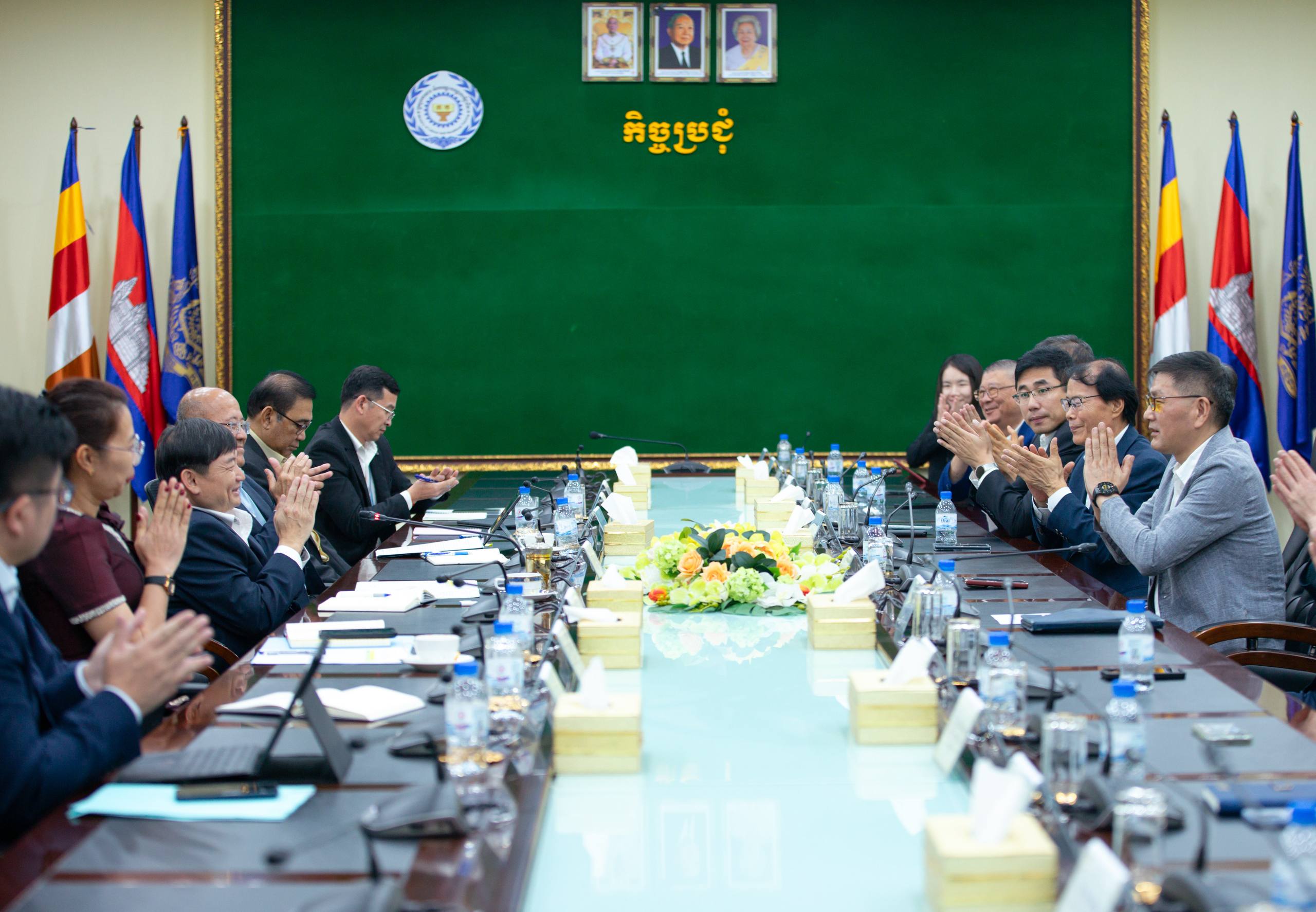 ភ្នំពេញ៖ លោក ហេង សួរ រដ្ឋមន្ត្រីក្រសួងការងារនិងបណ្តុះបណ្តាលវិជ្ជាជីវៈ បានទទួលជួបសម្តែងការគួរសម និងពិភាក្សាការងារជាមួយលោក Enjoy Ho ប្រធានសមាគមវាយនភណ្ឌ សម្លៀកបំពាក់ ស្បែកជើង និងផលិតផលធ្វើដំណើរនៅកម្ពុជា (TAFTAC) និងគណៈកម្មការប្រតិបត្តិថ្មី នារសៀលថ្ងៃទី៧ ខែមេសា ឆ្នាំ២០២៦នេះ នៅទីស្តីការក្រសួង ដើម្បីពង្រឹងភាពជាដៃគូ ក្នុងការជំរុញការអភិវឌ្ឍវិស័យការងារ ឱ្យកាន់រីកចម្រើនប្រកប ដោយសមត្ថភាពប្រកួតប្រជែង និងរក្សាបាននូវទីផ្សារសម្រាប់ការនាំចេញផលិតផលពីកម្ពុជា ដែលបានជួយបង្កើតការងារ ជូនកម្មករនិយោជិតប្រមាណ ១,២ លាននាក់ និងអ្នកដែលទទួលផល ដោយប្រយោលពីវិស័យនេះ ប្រមាណ ៣លាននាក់។