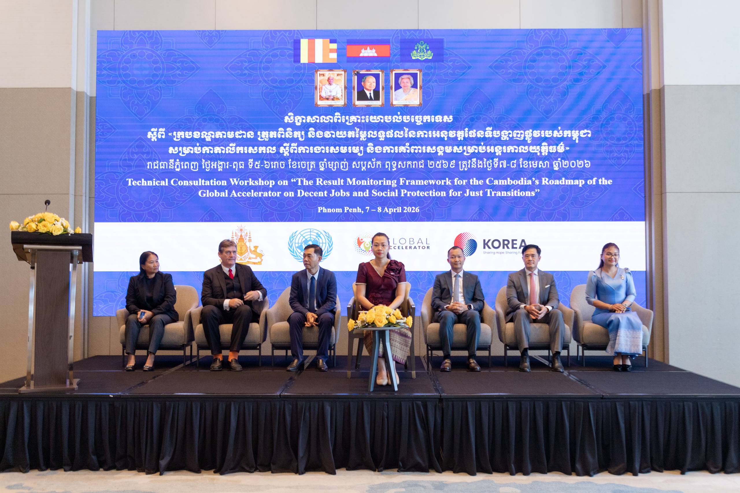 ភ្នំពេញ ៖ លោកស្រី សុវណ្ណ វណ្ណារតន៍ រដ្ឋលេខាធិការប្រចាំការ និងជាអនុប្រធានប្រចាំការ នៃក្រុមការងារ ក.ផ.ក.អ. តំណាងដ៏ខ្ពង់ខ្ពស់របស់លោក ហេង សួរ រដ្ឋមន្ដ្រីក្រសួងការងារ និងបណ្ដុះបណ្ដាលវិជ្ជាជីវៈ បានអញ្ជើញជាអធិបតីក្នុងពិធីបើក «សិក្ខាសាលាពិគ្រោះយោបល់បច្ចេកទេស ស្តីពីក្របខណ្ឌតាមដាន ត្រួតពិនិត្យ និងវាយតម្លៃផែនទីបង្ហាញផ្លូវរបស់កម្ពុជា សម្រាប់កាតាលីករសកលស្តីពីការងារសមរម្យ និងការគាំពារសង្គម សម្រាប់អន្តរកាលយុត្តិធម៌» ដែលប្រារព្ធឡើងនៅសណ្ឋាគារ Fairfield by Marriott ភ្នំពេញ នាថ្ងៃទី៧ ខែមេសា ឆ្នាំ២០២៦ ដោយមានការចូលរួម ពីទីភ្នាក់ងារ អង្គការសហប្រជាជាតិ ដៃគូអភិវឌ្ឍន៍ ព្រមទាំងថ្នាក់ដឹកនាំ និងមន្ត្រីបច្ចេកទេសមកពីក្រសួង-ស្ថាប័នពាក់ព័ន្ធ តំណាងភាគីនិយោជក កម្មករនិយោជិត និងអង្គការសង្គមស៊ីវិល ក្នុងគោលបំណងពិនិត្យ និងកែលម្អក្រខ័ណ្ឌតាមដាន និងវាយតម្លៃ (RMF) នៃផែនទីបង្ហាញផ្លូវកាតាលីករសកល ដើម្បីជំរុញការងារសមរម្យ និងការគាំពារសង្គមនៅកម្ពុជា។