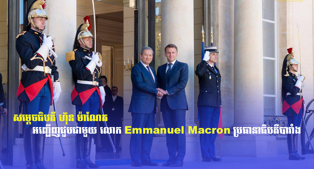 សម្តេចធិបតី ហ៊ុន ម៉ាណែត អញ្ជើញជួបជាមួយ លោក Emmanuel Macron ប្រធានាធិបតីបារាំង