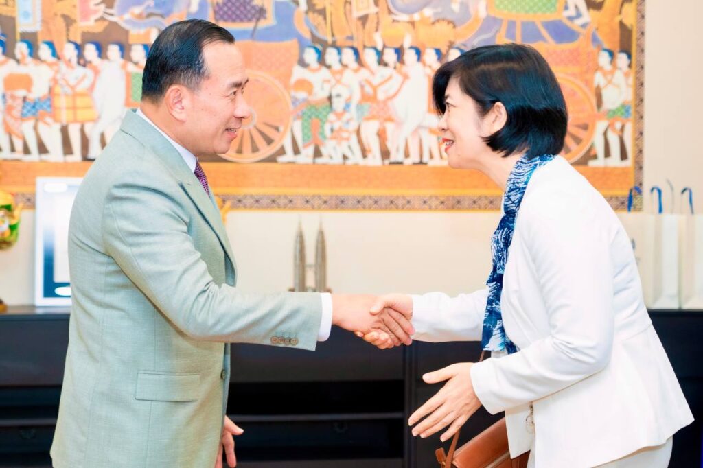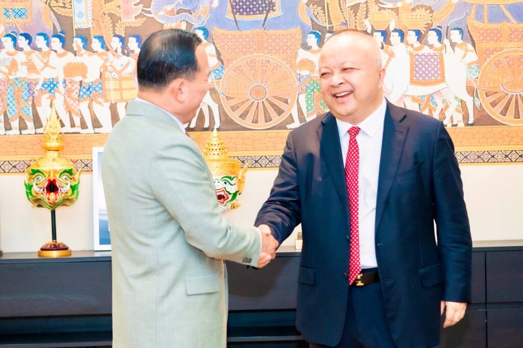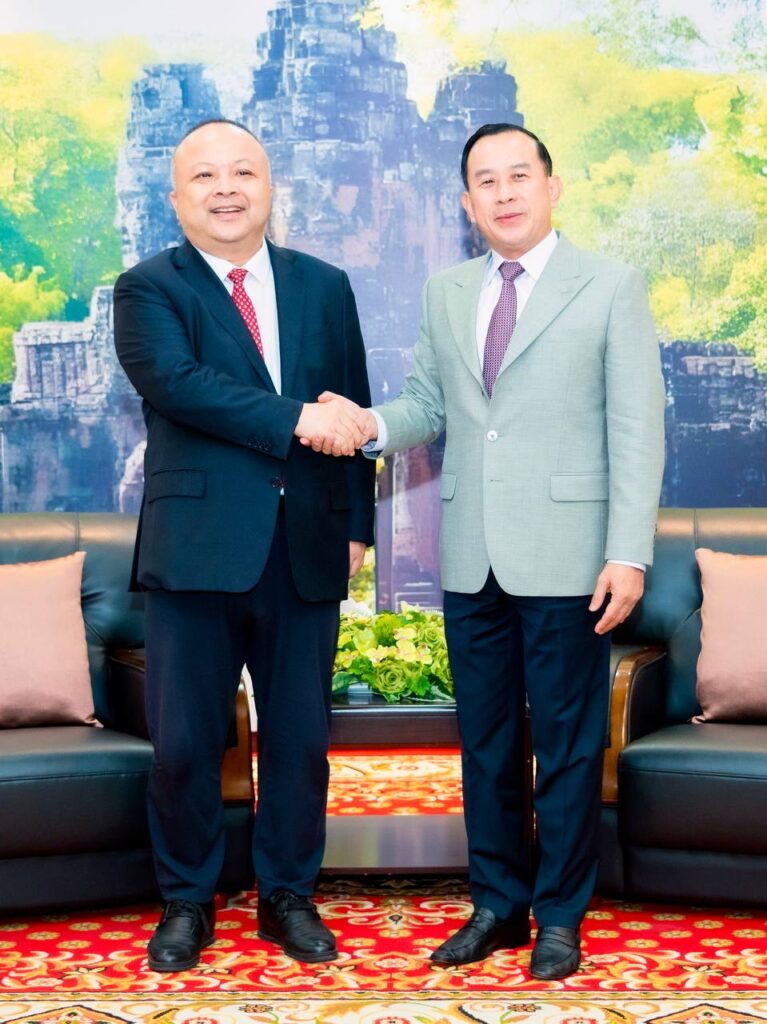 ភ្នំពេញ៖ នៅក្នុងឱកាសអបអរសាទរពិធីបុណ្យចូលឆ្នាំថ្មី ប្រពៃណីជាតិខ្មែរ ឆ្នាំ២០២៦ នាពេលខាងមុខនេះ លោក ហួត ហាក់ រដ្ឋមន្ត្រីក្រសួងទេសចរណ៍ ទទួលជួបពិភាក្សាការងារ​ ជាមួយលោកបណ្ឌិត David Zhan នាយកប្រតិបត្តិនៃក្រុមហ៊ុនអាកាសចរណ៍ជាតិកម្ពុជា (Air Cambodia) និងសហការី ស្តីពីការពង្រឹងកិច្ចសហប្រតិបត្តិការ រវាងក្រសួងទេសចរណ៍ និងក្រុមហ៊ុន Air Cambodia ក្នុងគោលបំណងជំរុញវិស័យទេសចរណ៍កម្ពុជា ឱ្យកាន់តែរីកចម្រើន និងមានប្រសិទ្ធភាពខ្ពស់ ។