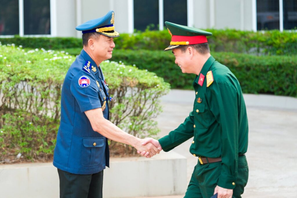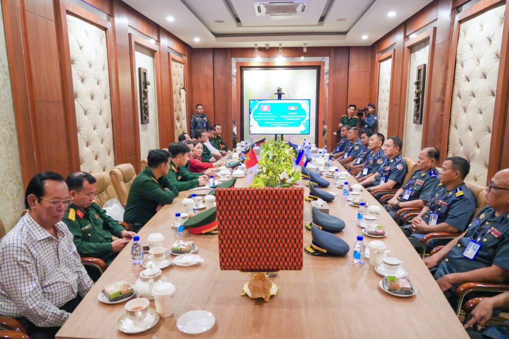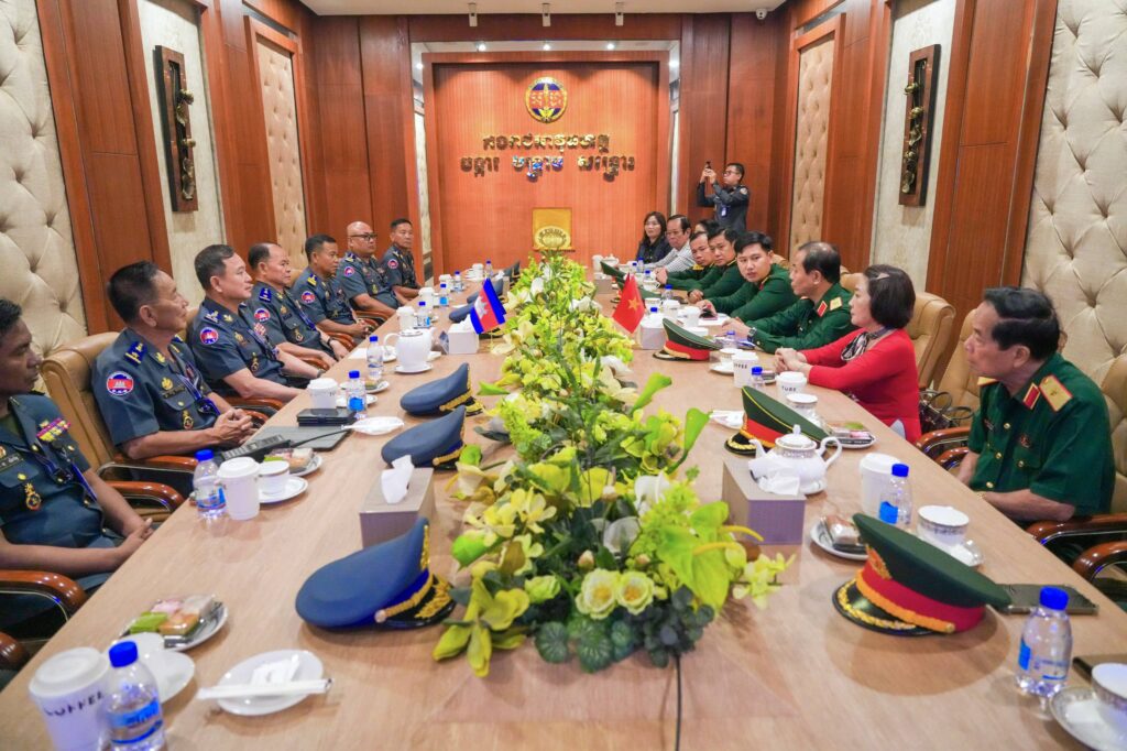 ភ្នំពេញ ៖ នៅថ្ងៃទី០៩ ខែមេសា ឆ្នាំ២០២៦ លោកឧត្តមសេនីយ៍ឯក រ័ត្ន ស៊្រាង មេបញ្ជាការរង កងរាជអាវុធហត្ថលើផ្ទៃប្រទេស ជាមេបញ្ជាការ កងរាជអាវុធហត្ថរាជធានីភ្នំពេញ អមដោយលោក លោកមេបញ្ជាការរង នាយសេនាធិការរង ប្រធាន-អនុប្រធានមន្ទីរ បានធ្វើបដិសណ្ឋារកិច្ច គណៈប្រតិភូយោធាទីក្រុងហូជីមិញ នៃកងទ័ពប្រជាជនវៀតណាម ដឹកនាំដោយ លោកឧត្តមសេនីយ៍ត្រី វូ វ៉ាន់ឌៀន មេបញ្ជាការ បញ្ជាការដ្ឋាន យោធាទីក្រុងហូជីមិញ ដែលបានអញ្ជើញមកដល់បញ្ជាការដ្ឋាន កងរាជអាវុធហត្ថរាជធានីភ្នំពេញ ដើម្បីជួបសំណេះសំណាលសួរសុខទុក្ខ និងជូនពរ ក្នុងឱកាសបុណ្យចូលឆ្នាំថ្មី ប្រពៃណីជាតិខ្មែរ ដែលនឹងមកដល់នាពេលខាងមុខនេះ។