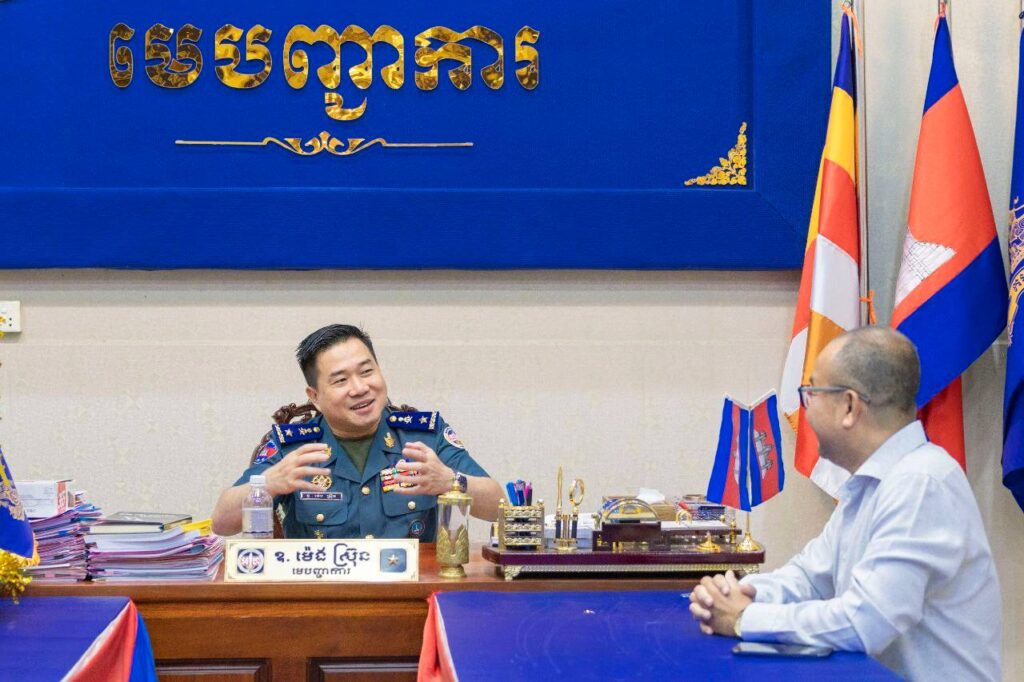 កំពង់ស្ពឺ៖ នារសៀលថ្ងៃទី៩ ខែមេសា ឆ្នាំ២០២៦ លោកឧត្តមសេនីយ៍ត្រី ម៉េង ស្រ៊ុន មេបញ្ជាការ កងរាជអាវុធហត្ថខេត្តកំពង់ស្ពឺ បានអញ្ជើញ​ទទួលជួបសំណោះសំណាលជាមួយ​ លោក លឹម វាសនា នាយកអតិថិជនសហគ្រាស​​ ​ជាតំណាងឲ្យក្រុមហ៊ុន Metfone ប្រចាំខេត្តកំពង់ស្ពឺ ដែលបាននាំយកនូវកាដូរអនុស្សាវរីយ៍ និងជូនពរជ័យដល់លោកឧត្តមសេនីយ៍ត្រី ម៉េង ស្រ៊ុន​ រួម​នឹង​កម្លាំង​កងរាជអាវុធហត្ថ​ខេត្តកំពង់ស្ពឺទាំងអស់ ក្នុងឱកាស​អបអរសាទរពិធីបុណ្យ​បុណ្យចូលឆ្នាំថ្មីប្រពៃណីជាតិខ្មែរខាងមុខនេះ​ផងដែរ។