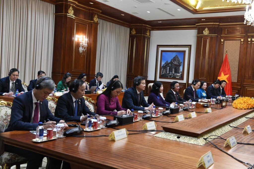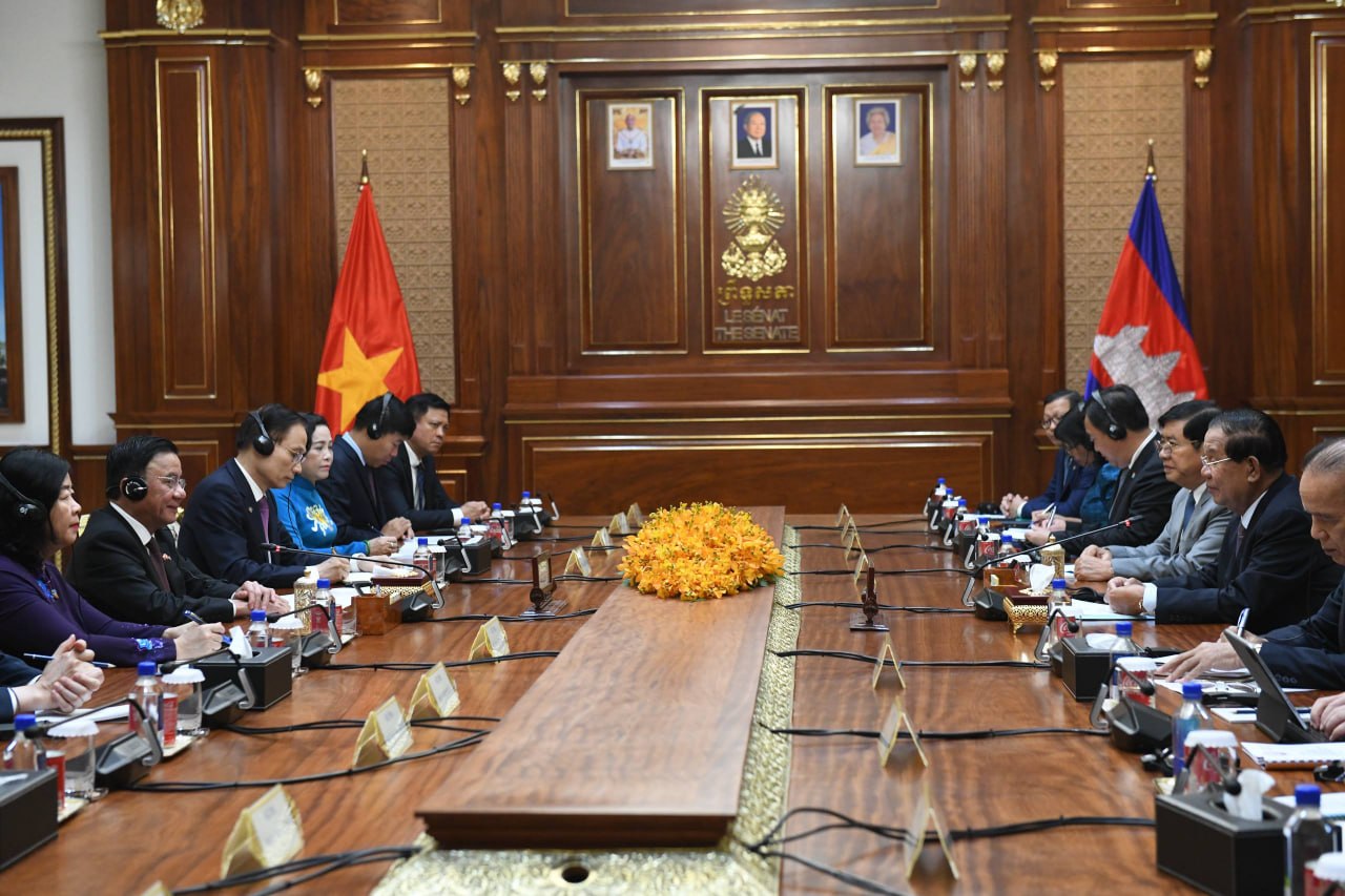 ភ្នំពេញ៖ សម្តេចតេជោ ហ៊ុន សែន ប្រមុខរដ្ឋស្តីទី នៃព្រះរាជាណាចក្រកម្ពុជា នៅព្រឹកថ្ងៃទី១០ ខែមេសា ឆ្នាំ២០២៦នេះ បានអនុញ្ញាតជូន លោក ត្រិន កឹមទូ (Tran Cam Tu) សមាជិកការិយាល័យ នយោបាយ និងជាសមាជិកប្រចាំការ គណៈលេខាធិការមជ្ឈិមបក្សកុម្មុយនីស្តវៀតណាម ចូលជួបសំដែងការគួរសម នាព្រឹកថ្ងៃទី១០ ខែមេសា ឆ្នាំ២០២៦ នៅវិមានសាមគ្គីភាព នៃព្រឹទ្ធសភា។