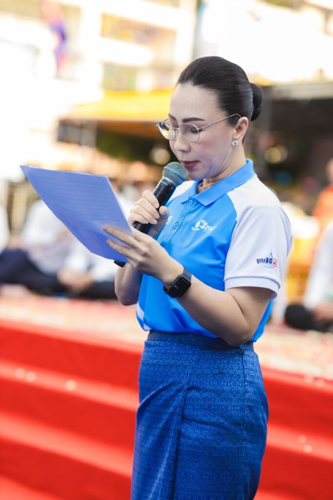 លោកស្រី បានបន្តថាជាការពិតណាស់ ពុទ្ធសាសនា បានដើរតួនាទី ជាគ្រឹះនៃ សីលធម៌ ការអប់រំ និងការផ្សះផ្សាស្មារតីសង្គម ។ តួយ៉ាងសកម្មភាពព្រឹកនេះ ជាការចូលរួមចំណែកដ៏សំខាន់ក្នុងការថែរក្សាប្រពៃណី និងសាសនាដ៏ល្អផូរផង់ ។ ជាមួយគ្នានេះដែរផ្សាភ្ជាប់ នឹងពិធីស្រោចស្រពព្រះសុគន្ធវារី វីតាល់និងមូលនិធិ២៥រៀល បានពាំនាំមកប្រគេន និងជូន ទេយ្យទាន សម្ភារៈ គ្រឿងបរិភោគ វីតាល់ មីជាតិ ផលិតផលគ្រឿងទេសវ័នម៉រ សម្ភារៈប្រើប្រាស់ និងឈុតខោអាវ សម្រាប់លោកយាយលោកតា និងថវិកាមួយចំនួន ជូនលោកយាយ លោកតា ១០០នាក់ និងប្រគេនព្រះសង្ឃ ១០០អង្គ ។