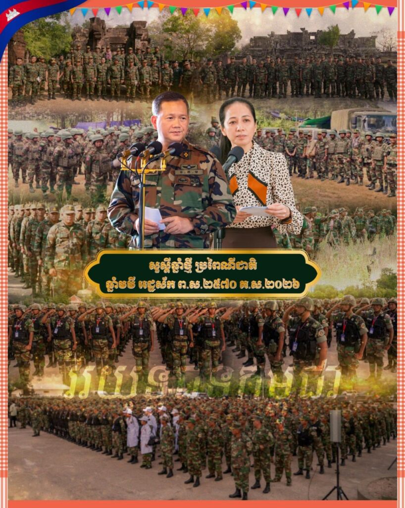 ក្នុងឱកាសបុណ្យចូលឆ្នាំថ្មី ប្រពៃណីជាតិ ឆ្នាំមមី អដ្ឋស័ក ព.ស.២៥៧០ គ.ស.២០២៦ លោកជំទាវបណ្ឌិត ពេជ ចន្ទមុន្នី ហ៊ុន ម៉ាណែត ស្រ្តីទី១របស់កម្ពុជា មានប្រសាសន៍ថា ប្រជាពលរដ្ឋដែលជាសមរភូមិជួរក្រោយបានដឹងគុណយ៉ាងជ្រាលជ្រៅចំពោះវីរភាពដ៏អង់អាចក្លាហានរបស់វីរយុទ្ធជនទាំងអស់ ដែលកំពុងបំពេញភារកិច្ចការពារមាតុភូមិ ថែមទាំងផ្តល់ឱ្យពលរដ្ឋនូវស្នាមញញឹមពេញលេញ ក្នុងការជួបជុំគ្នា អបអរសាទរពិធីបុណ្យចូលឆ្នាំថ្មី ប្រពៃណីជាតិខ្មែរ ។