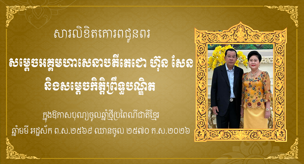 ជាថ្មីម្ដងទៀត ខ្ញុំសូមគោរពប្រសិទ្ធពរជ័យ សិរីមង្គល វិបុលសុខ បវរមហាប្រសើរ ជូនចំពោះ សម្ដេចតេជោ និងសម្ដេចកិតិ្តព្រឹទ្ធបណ្ឌិត ព្រមទាំងបុត្រាបុត្រី ចៅប្រុសចៅស្រី សូមប្រកបដោយពរទាំងឡាយប្រាំប្រការគឺ អាយុ វណ្ណៈ សុខៈ ពលៈ និងបដិភាណៈ កុំបីឃ្លៀងឃ្លាតឡើយ៕