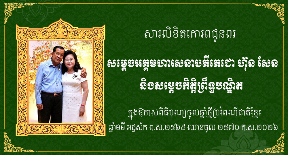 ជាថ្មីម្ដងទៀត ខ្ញុំសូមគោរពប្រសិទ្ធពរជ័យ សិរីមង្គល វិបុលសុខ បវរមហាប្រសើរ ជូនចំពោះ​​ សម្ដេចតេជោ និងសម្ដេចកិតិ្តព្រឹទ្ធបណ្ឌិត ព្រមទាំងបុត្រាបុត្រី ចៅប្រុសចៅស្រី សូមប្រកបដោយពរទាំងឡាយប្រាំប្រការគឺ អាយុ វណ្ណៈ សុខៈ ពលៈ និងបដិភាណៈ កុំបីឃ្លៀងឃ្លាតឡើយ៕