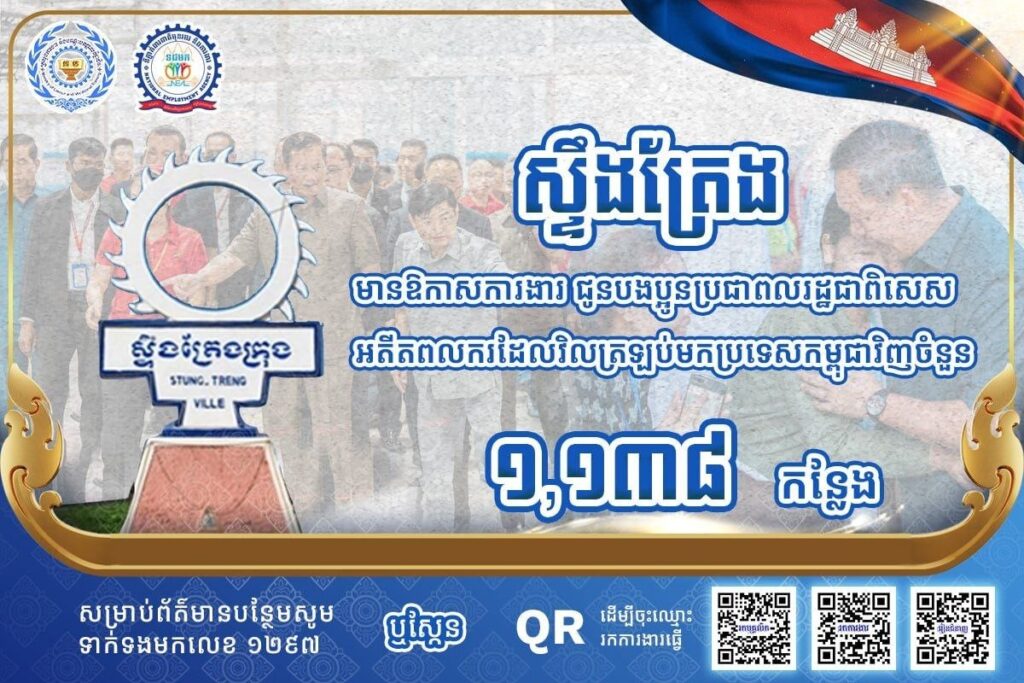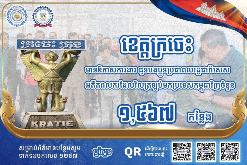 តាមរយៈការផ្សព្វផ្សាយ ក្រសួងការងារ បានឱ្យដឹងថា គិតត្រឹមថ្ងៃទី ១៣ ខែមេសា ឆ្នាំ២០២៦នេះ ខេត្តស្ថិតនៅភូមិភាគឦសាន្តរួមមាន៖ ខេត្តក្រចេះ ខេត្តស្ទឹងត្រែង ខេត្តរតនគិរី និងខេត្តមណ្ឌលគិរី មានឱកាសការងារសរុបចំនួន ៤,៣៣៤កន្លែង កំពុងរង់ចាំបងប្អូនអតីតពលករត្រឡប់មកពីប្រទេសថៃ និងអ្នកកំពុងស្វែងរកការងារធ្វើ។ ឱកាសការងារទាំងនោះ ស្ថិតក្នុងវិស័យកសិកម្ម និងវិស័យសេវាកម្ម។