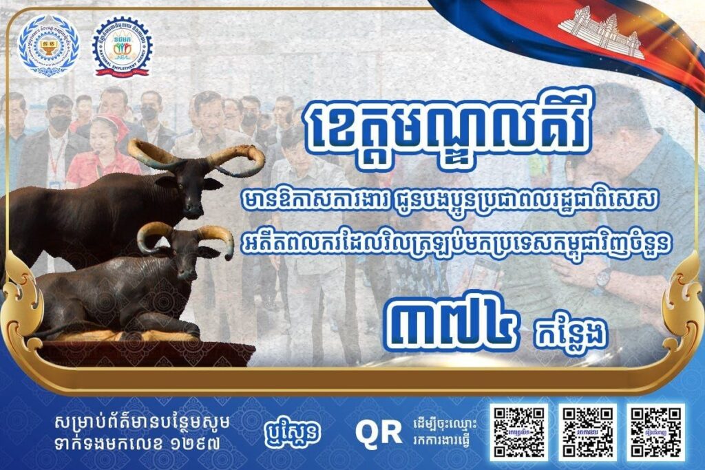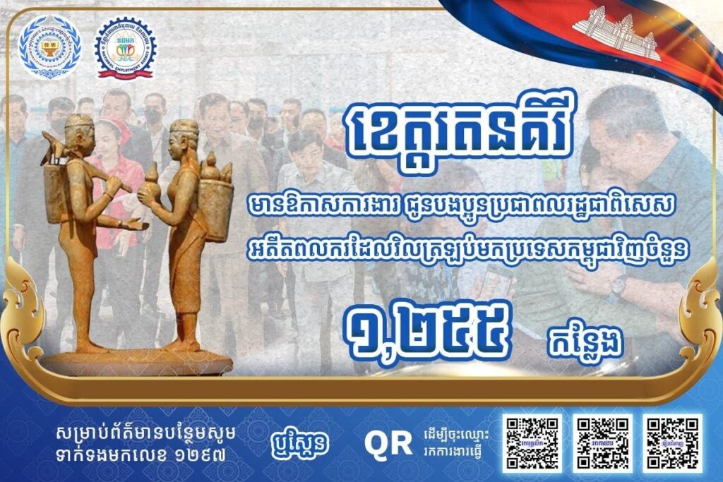 ក្រសួងការងារ៖ ខេត្តចំនួន ៤ នៅភូមិភាគឦសាន្ត មានឱកាសការងារជាង ៤ពាន់កន្លែងកំពុងរង់ចាំអតីតពលករត្រឡប់មកពីប្រទេសថៃ និងអ្នកកំពុងស្វែងរកការងារធ្វើ