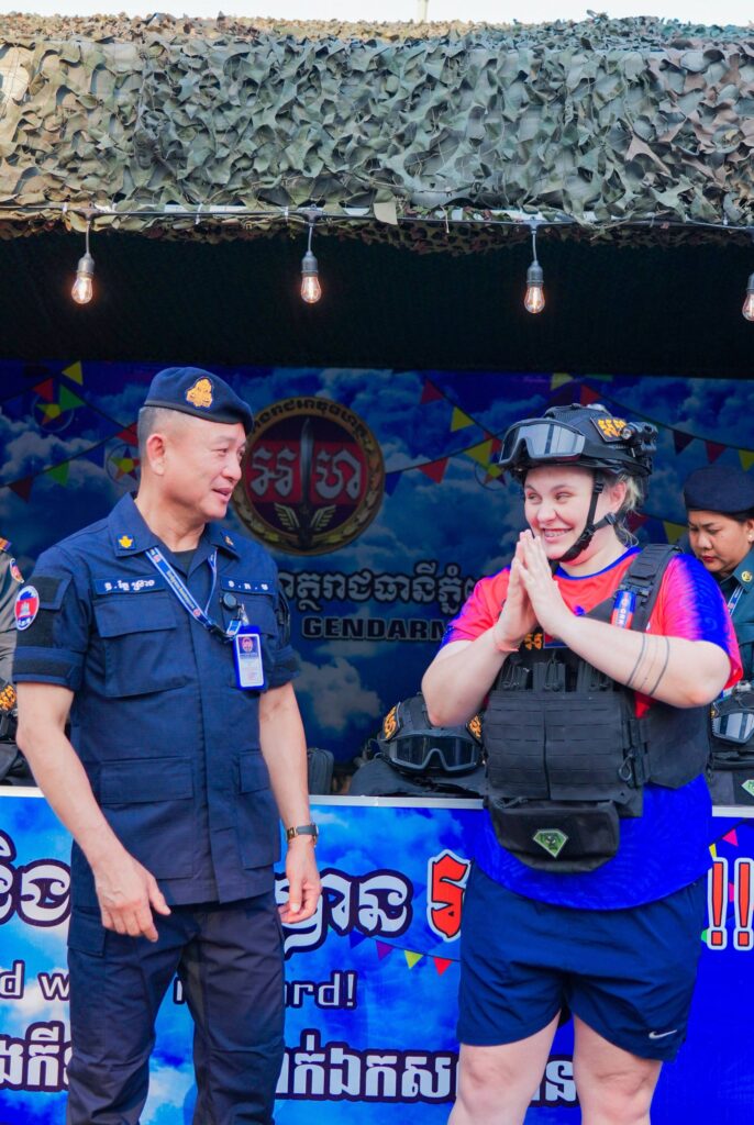 ក្នុងឱកាសនោះ លោកឧត្តមសេនីយ៍ឯក រ័ត្ន ស្រ៊ាង ក៏បានបន្តទៅទស្សនាស្តង់ពិព័រណ៌ផ្សព្វផ្សាយពី តួនាទី ភារកិច្ច សកម្មភាពការងាររបស់អាវុធហត្ថរាជធានីភ្នំពេញ និងលេខទូរស័ព្ទអន្តរាគមន៏បន្ទាន់ (Emergency Hotline) 1291 ដែលកំពុងទទួលបានការគាំទ្រពីបងប្អូនប្រជាពលរដ្ឋ ក៏ដូចជាភ្ញៀវទេសចរណ៍ជាតិ-អន្តរជាតិ បានចូលរួមឆ្លើយសំណួរ ប្រកួតកីឡា និងលេងល្បែងប្រជាប្រិយ ដើម្បីទទួលបានរង្វាន់ជាច្រើនជាមួយ កងរាជអាវុធហត្ថរាជធានីភ្នំពេញ យ៉ាងច្រើនកុះករ ព្រមទាំងលើកទឹកចិត្ត និងថ្លែងអំណរគុណ ដល់ នាយ-នាយរងអាវុធហត្ថរាជធានីភ្នំពេញ តាមបណ្តាគោលដៅទាំងអស់ ដែលបានយកចិត្តទុកដាក់ បំពេញតួនាទីភារកិច្ចរៀងៗខ្លួន ប្រកបដោយការទទួលខុសត្រូវខ្ពស់ ផ្តល់នូវភាពកក់ក្តៅជូនប្រជាពលរដ្ឋ ក៏ដូចជាភ្ញៀវទេសចរណ៍ ដែលមកចូលរួមទស្សនានៅតាមបណ្តាទីតាំងនានា ដែលបានរៀបចំពិធីកំសាន្តសប្បាយ ក្នុងព្រឹត្តិការណ៍ នគរសង្ក្រាន្ត ក្នុងភូមិសាស្ត្ររាជធានីភ្នំពេញ រយៈពេល០៣ថ្ងៃមកនេះ៕