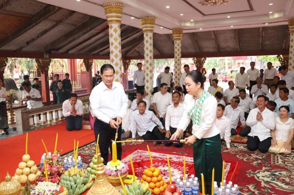 ក្នុងឱកាសដ៏វិសេសវិសាលនេះលោកអភិបាលខេត្ត និងលោកស្រី ព្រមទាំងថ្នាក់ដឹកនាំទាំងអស់ បានតាំងចិត្តអធិដ្ឋាន បន់ស្រន់ដល់បារមី នៃបូជនីយដ្ឋានប្រវត្តិសាស្ត្រ ទេពឧកញ៉ា ឃ្លាំង មឿង និងជំទាវ ខាន់ ខៀវ ដែលជាវីរបុរសស្នេហាជាតិដ៏មានមហិទ្ធិឫទ្ធិ ព្រមទាំងទេវតាឆ្នាំថ្មី ព្រះនាង រាក្យសាទេវី (បុត្រីទី៣ នៃកបិលមហាព្រហ្ម) សូមជួយប្រោះព្រំនូវសព្វសាធុការពរ សូមឱ្យថ្នាក់ដឹកនាំគ្រប់លំដាប់ថ្នាក់ និងប្រជាពលរដ្ឋទូទាំងខេត្តពោធិ៍សាត់ ក៏ដូចជាប្រជាជនកម្ពុជាទាំងមូល ជួបតែសេចក្តីសុខ សុភមង្គល និងចៀសផុតពីគ្រោះថ្នាក់ទាំងពួង។