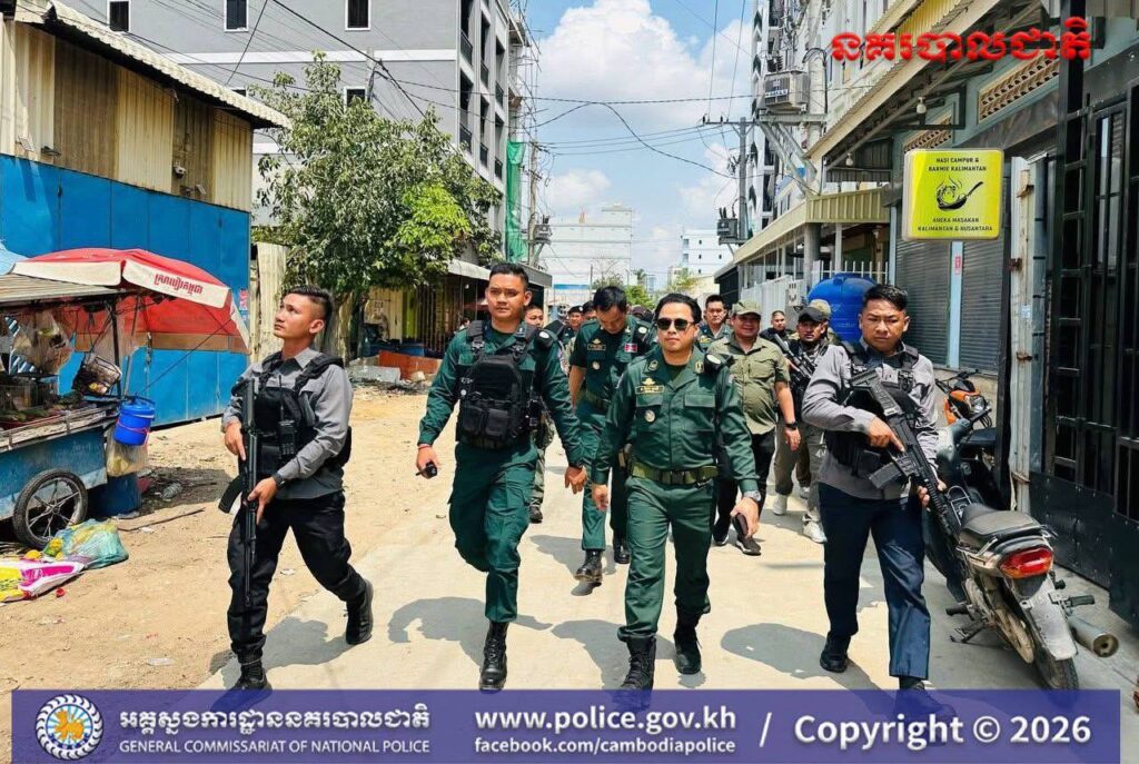 បន្ទាយមានជ័យ ៖ អនុវត្តតាមបទបញ្ជាផ្ទាល់របស់ នាយឧត្តមសេនីយ៍ ស ថេត អគ្គស្នងការនគរបាលជាតិ ដោយមានការសម្របសម្រួលពីតំណាងអយ្យការអមសាលាដំបូងខេត្តបន្ទាយមានជ័យ នៅថ្ងៃទី២២ ខែមេសា ឆ្នាំ២០២៦ កម្លាំងសមត្ថកិច្ចនៃអគ្គស្នងការដ្ឋាននគរបាលជាតិ សហការជាមួយស្នងការដ្ឋាននគរបាលខេត្តបន្ទាយមានជ័យ បានបើកប្រតិបត្តិការចុះបង្រ្កាបអគារលួចលាក់ប្រព្រឹត្តបទល្មើសឆបោកអនឡាញ ចំនួន០២ទីតាំង ស្ថិតនៅសង្កាត់អូរជ្រៅ ក្រុងប៉ោយប៉ែត ខេត្តបន្ទាយមានជ័យ ។