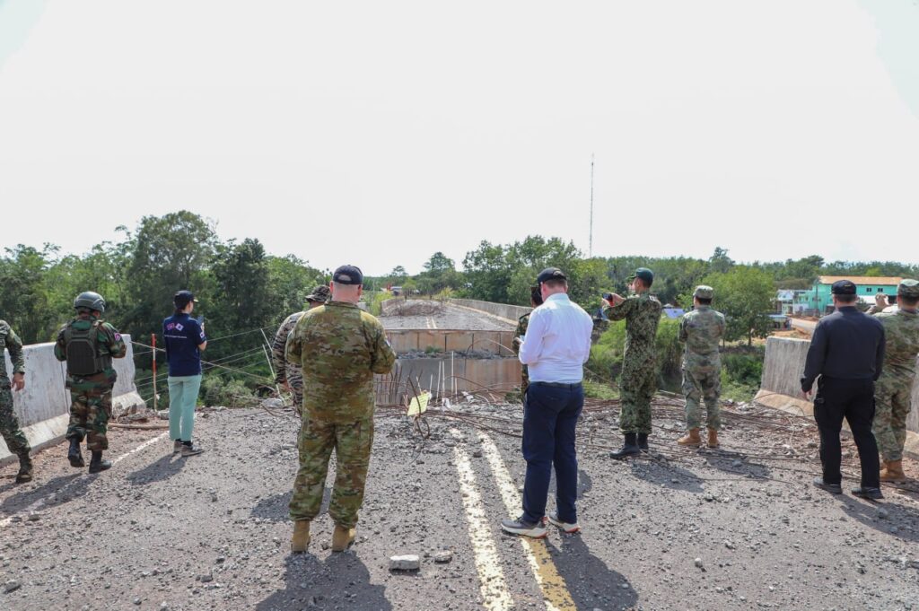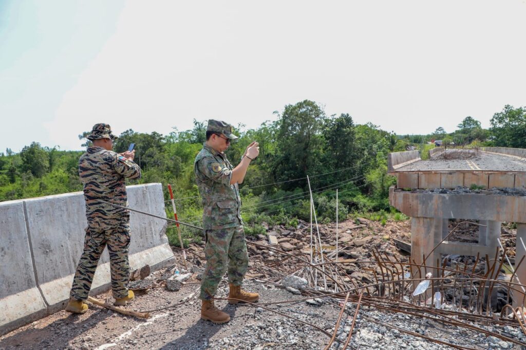 ក្រុមអនុព័ន្ធយោធាបរទេស ចុះសង្កេតការណ៍ និងផ្ទៀងផ្ទាត់អំពីស្ថានភាពនៅស្ពានស្ទឹងមេទឹក ដែលរងការវាយប្រហារដោយកងទ័ពអាកាសថៃ