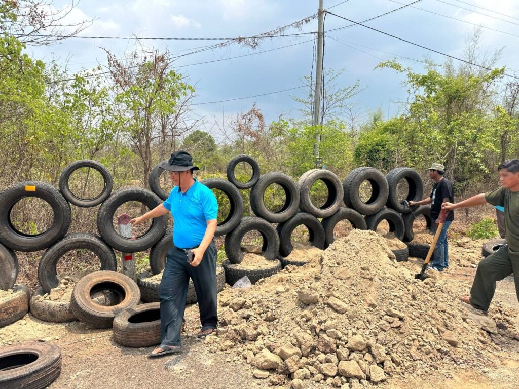ការរៀបចំរបាំងសុវត្ថិភាព ក្រុមការងារបានប្រើប្រាស់សំបកកង់ឡានជាង ២០០ សំបក ដើម្បីធ្វើជារណាំងការពារនៅចំណុចដែលងាយរងគ្រោះ ក្នុងគោលបំណងបង្ការ និងបញ្ចៀសគ្រោះថ្នាក់ចរាចរណ៍ ដែលកន្លងមកធ្លាប់បង្កឱ្យមានការខូចខាតទ្រព្យសម្បត្តិ និងគ្រោះថ្នាក់ដល់ជីវិត។