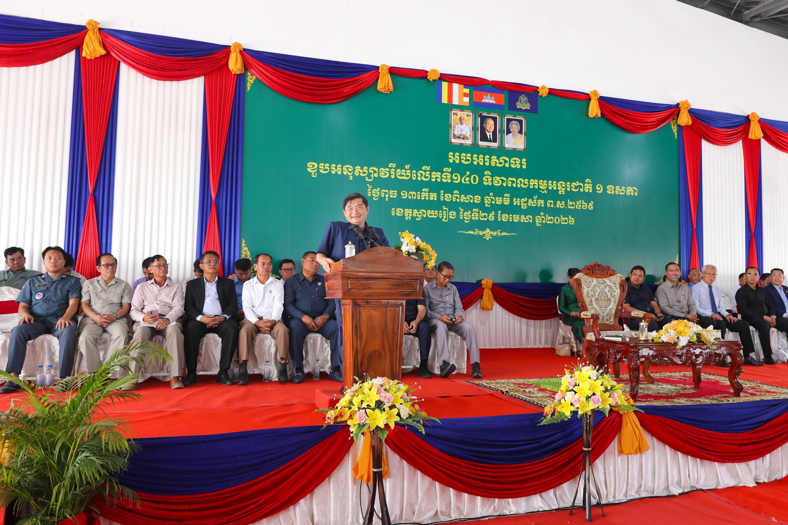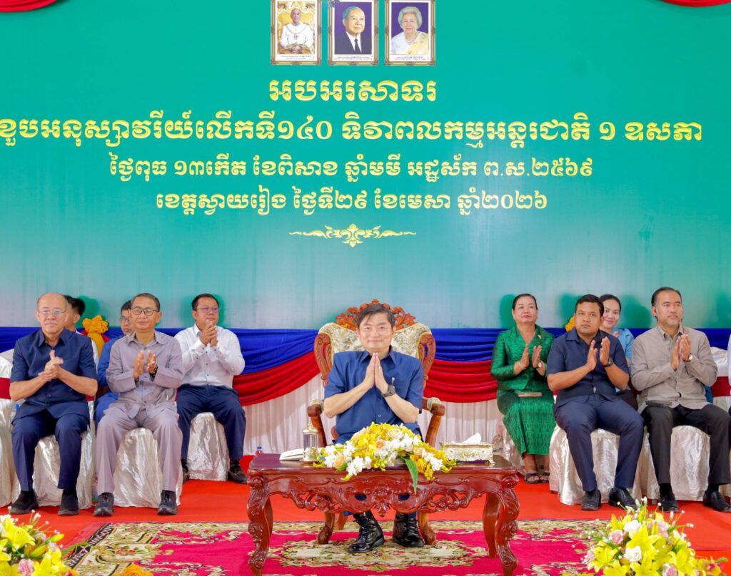 ស្វាយរៀង៖ នាព្រឹកថ្ងៃទី២៩ ខែមេសា ឆ្នាំ២០២៦ លោក ហេង សួរ រដ្ឋមន្ត្រីក្រសួងការងារ និងបណ្តុះបណ្តាលវិជ្ជាជីវៈ បានអញ្ជើញជាអធិបតី ភាពដ៏ខ្ពង់ខ្ពស់ ក្នុងពិធីអបអរសាទរខួបអនុស្សាវរីយ៍លើកទី១៤០ នៃទិវាពលកម្មអន្តរជាតិ ១ ឧសភា ឆ្នាំ២០២៦ ក្រោមប្រធានបទ «រួមគ្នាកសាងភាពធន់ ដើម្បីការងារសមរម្យ» ដែលបានប្រារព្ធឡើង នៅតំបន់សេដ្ឋកិច្ចពិសេសស្វាយរៀង ហ្គីហ្គា រីសស៍ ខេត្តស្វាយរៀង ដែលមានអ្នកចូលរួមប្រមាណជា ១ ៦០០នាក់។
